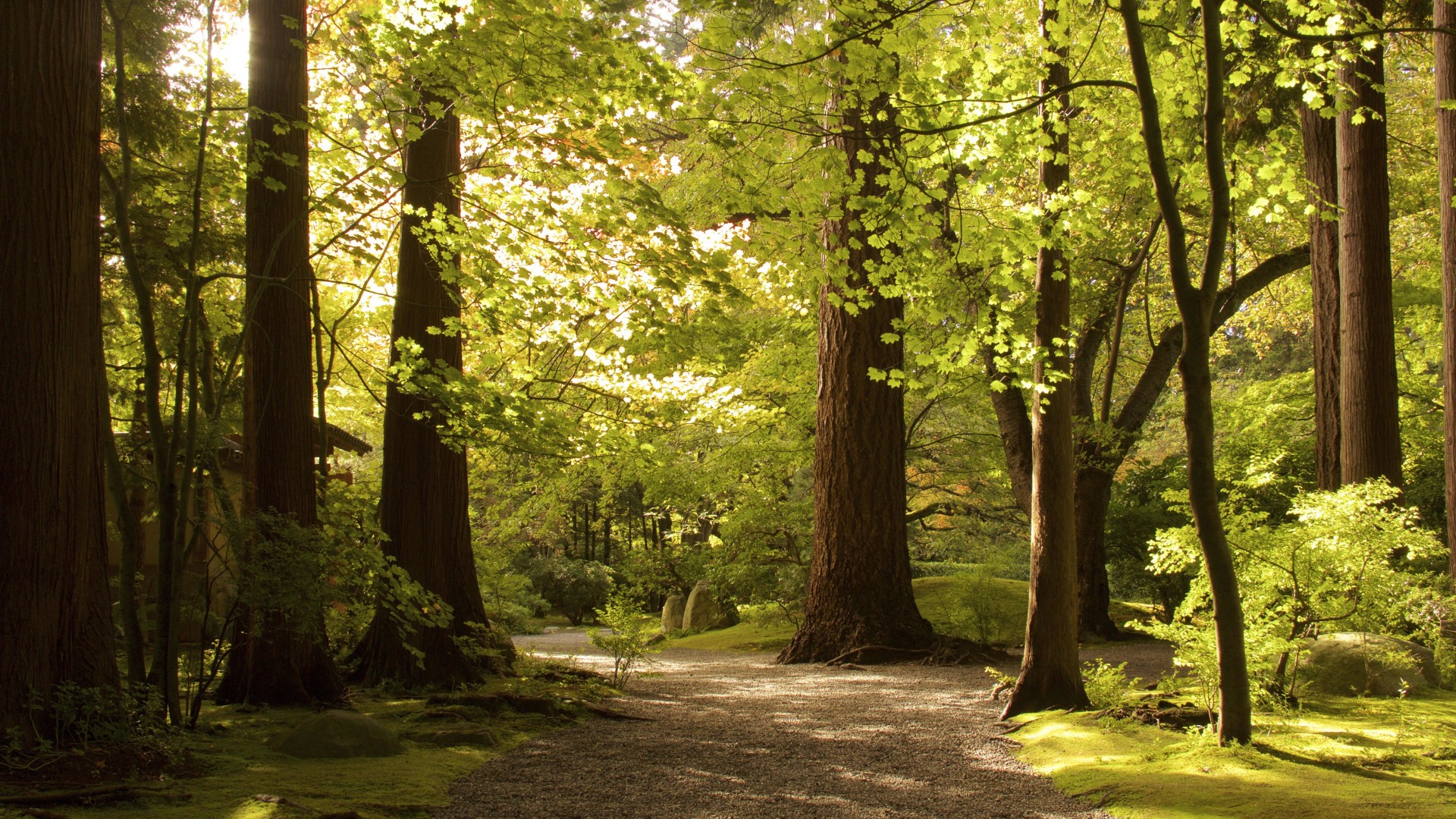 公园小路树林草地绿色高清护眼风景电脑壁纸免费下载