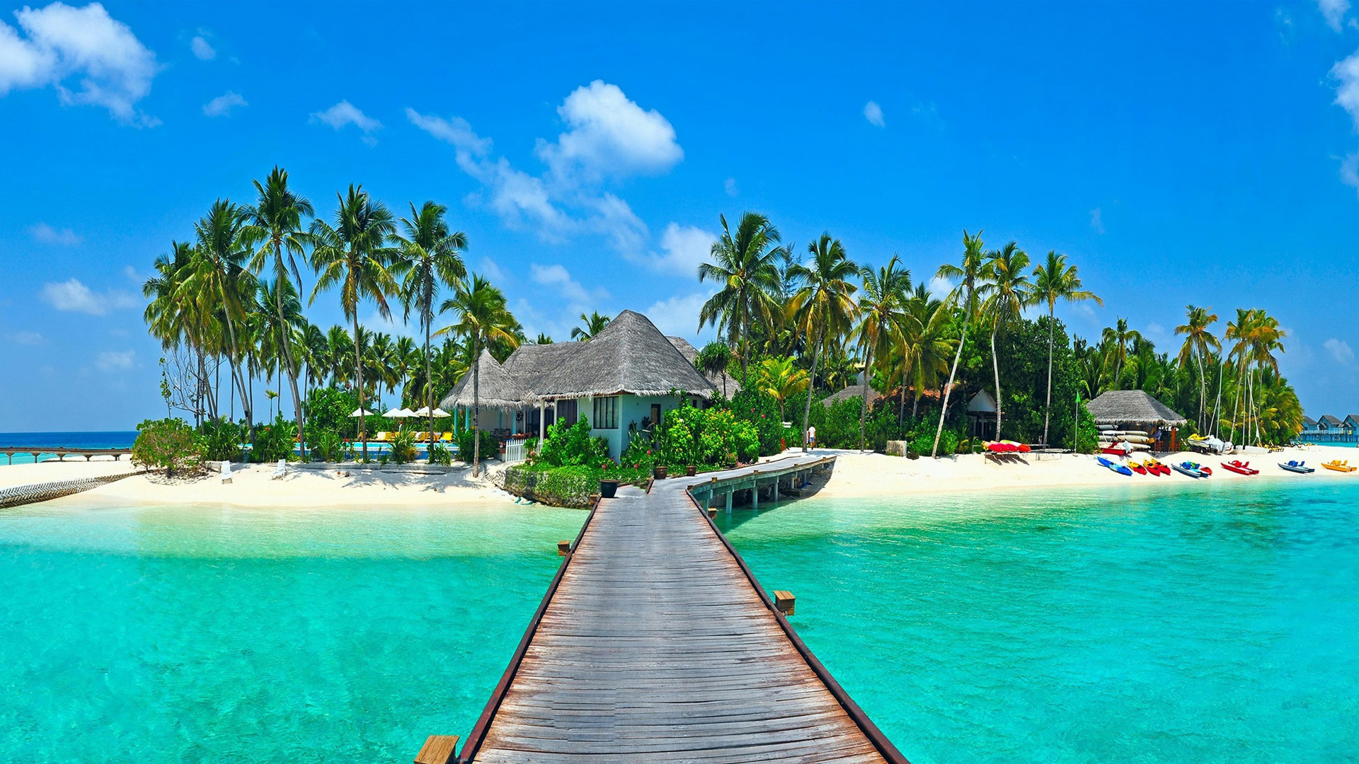 马尔代夫之夜码头灯景美丽浪漫风景免费电脑壁纸下载
