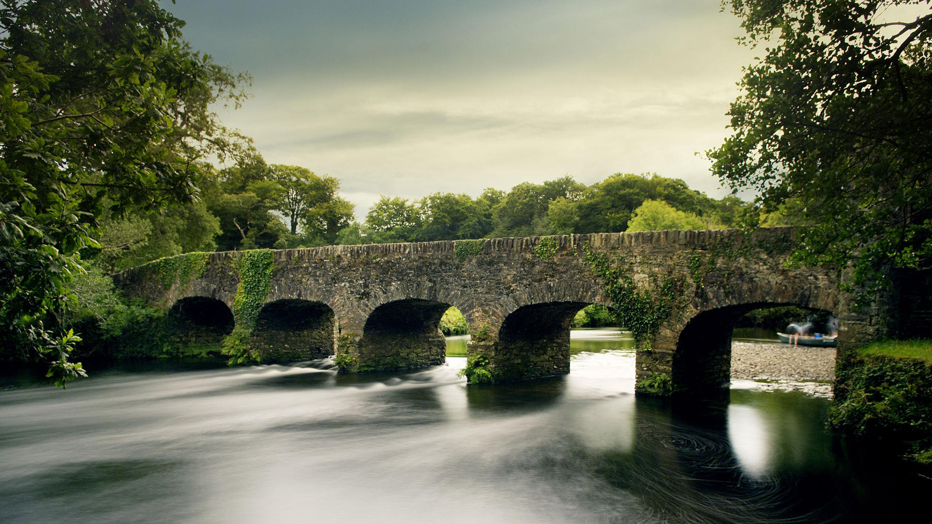 森林树木瀑布河流绿色自然风景免费电脑壁纸下载