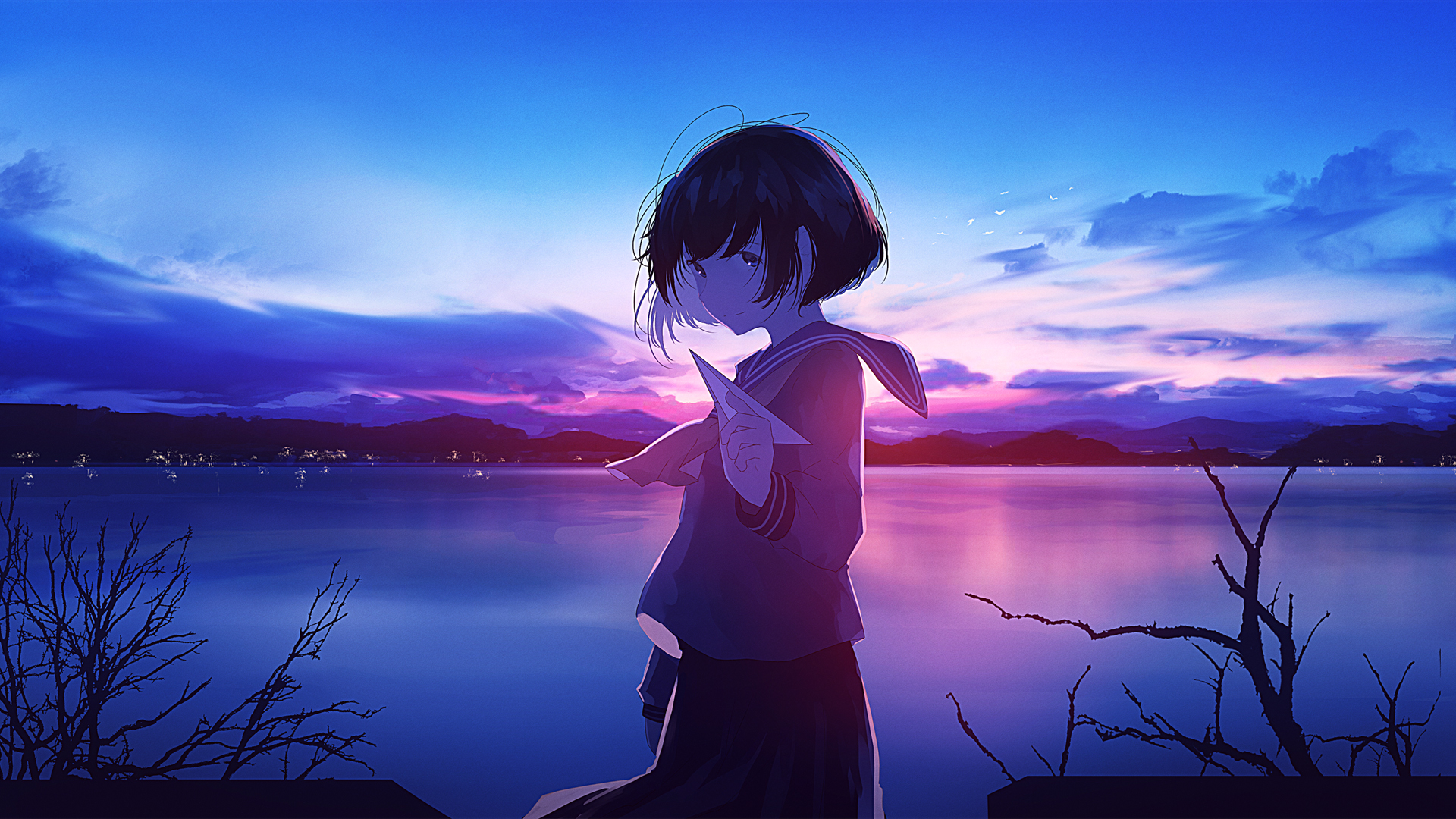 飞向明天 女生水手服2K动漫免费电脑壁纸下载