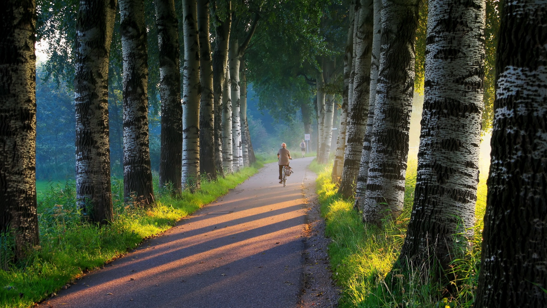 公园小路树林草地绿色高清护眼风景电脑壁纸免费下载