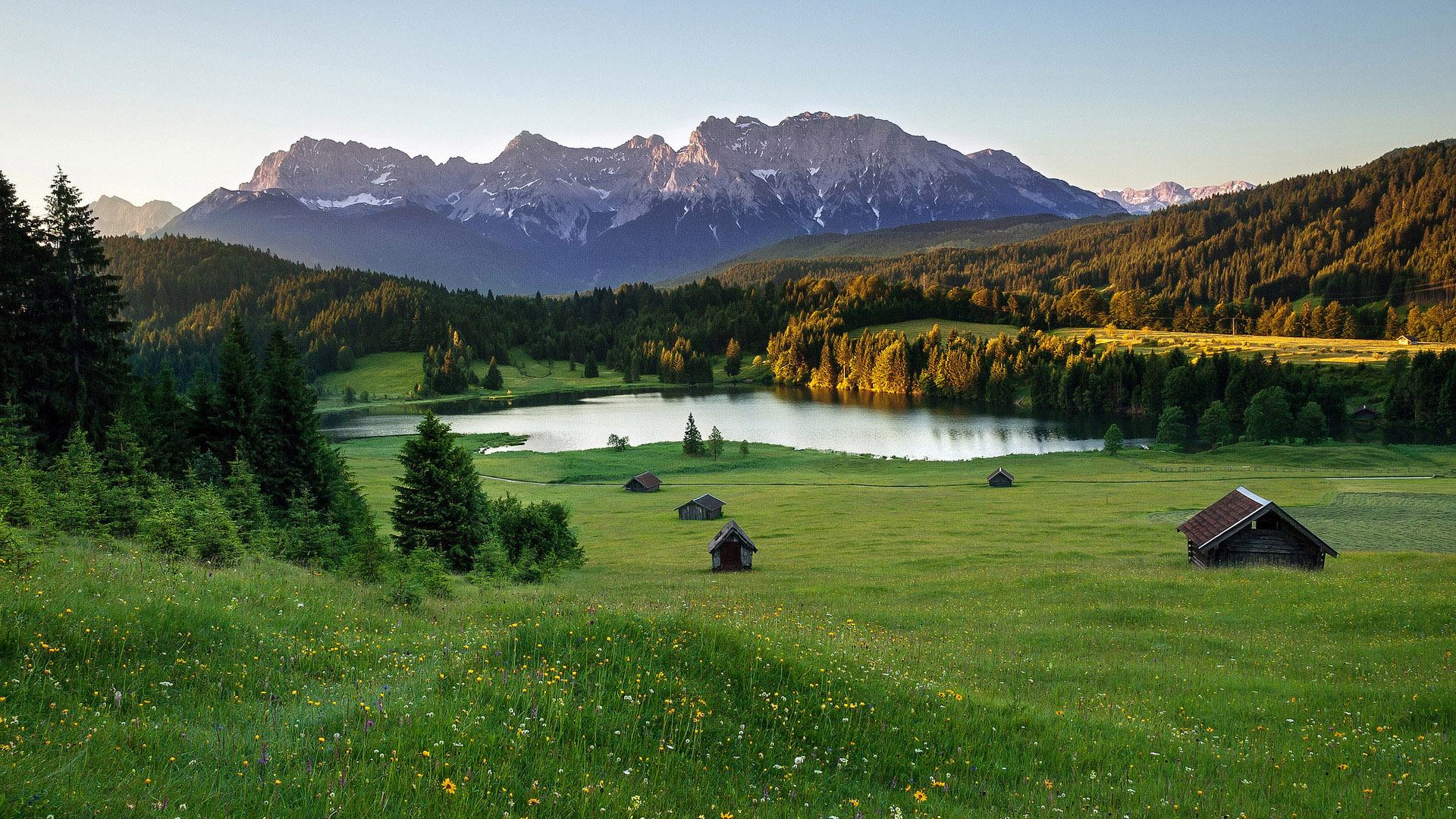 清晨湖光山色森林岛屿风景免费电脑壁纸下载