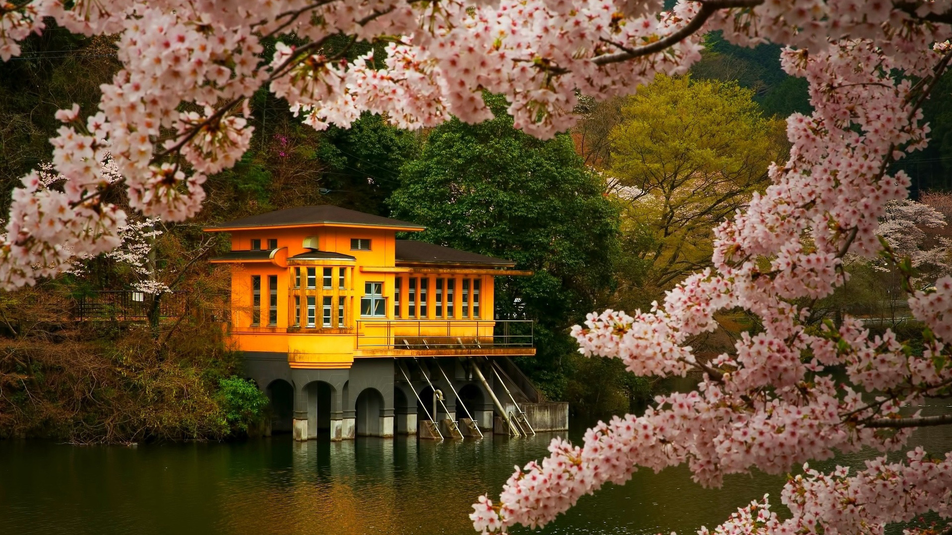 意大利山间小教堂湖泊森林码头风景电脑壁纸免费下载