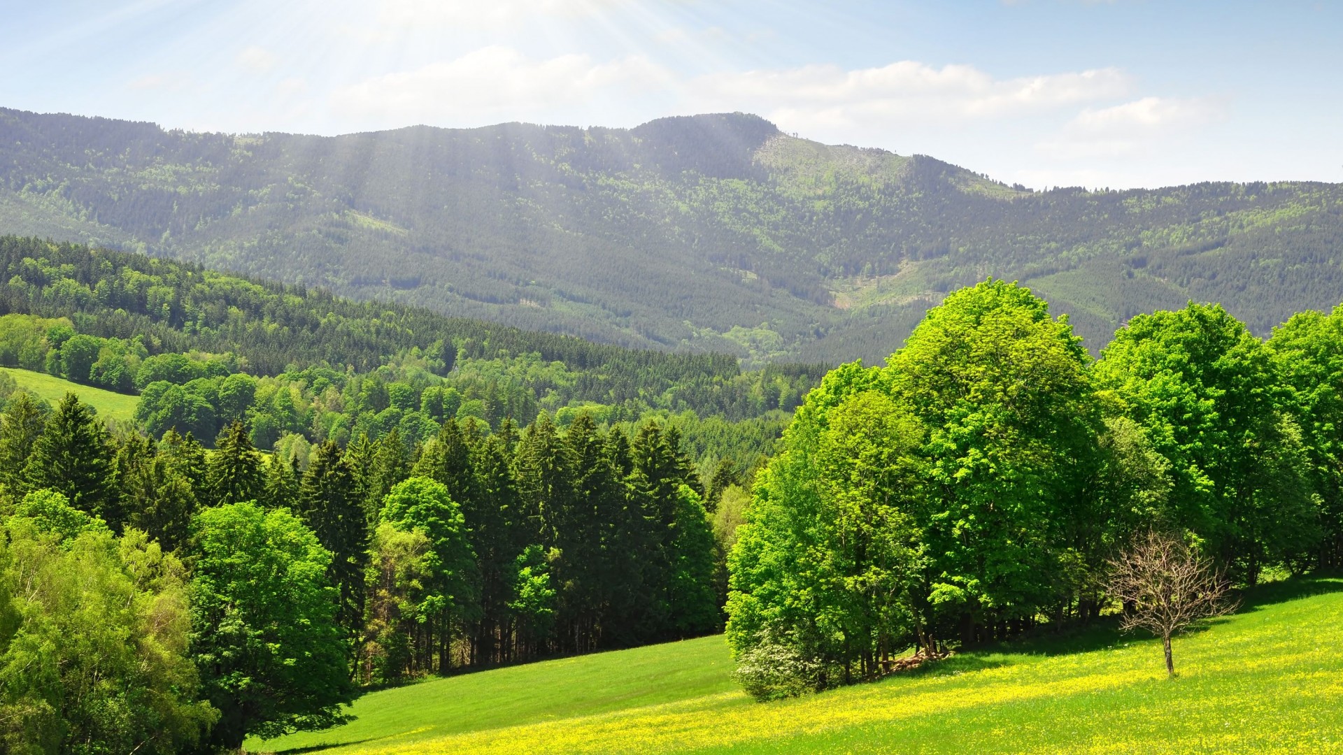 阳光透过树林2K自然风景免费电脑壁纸下载