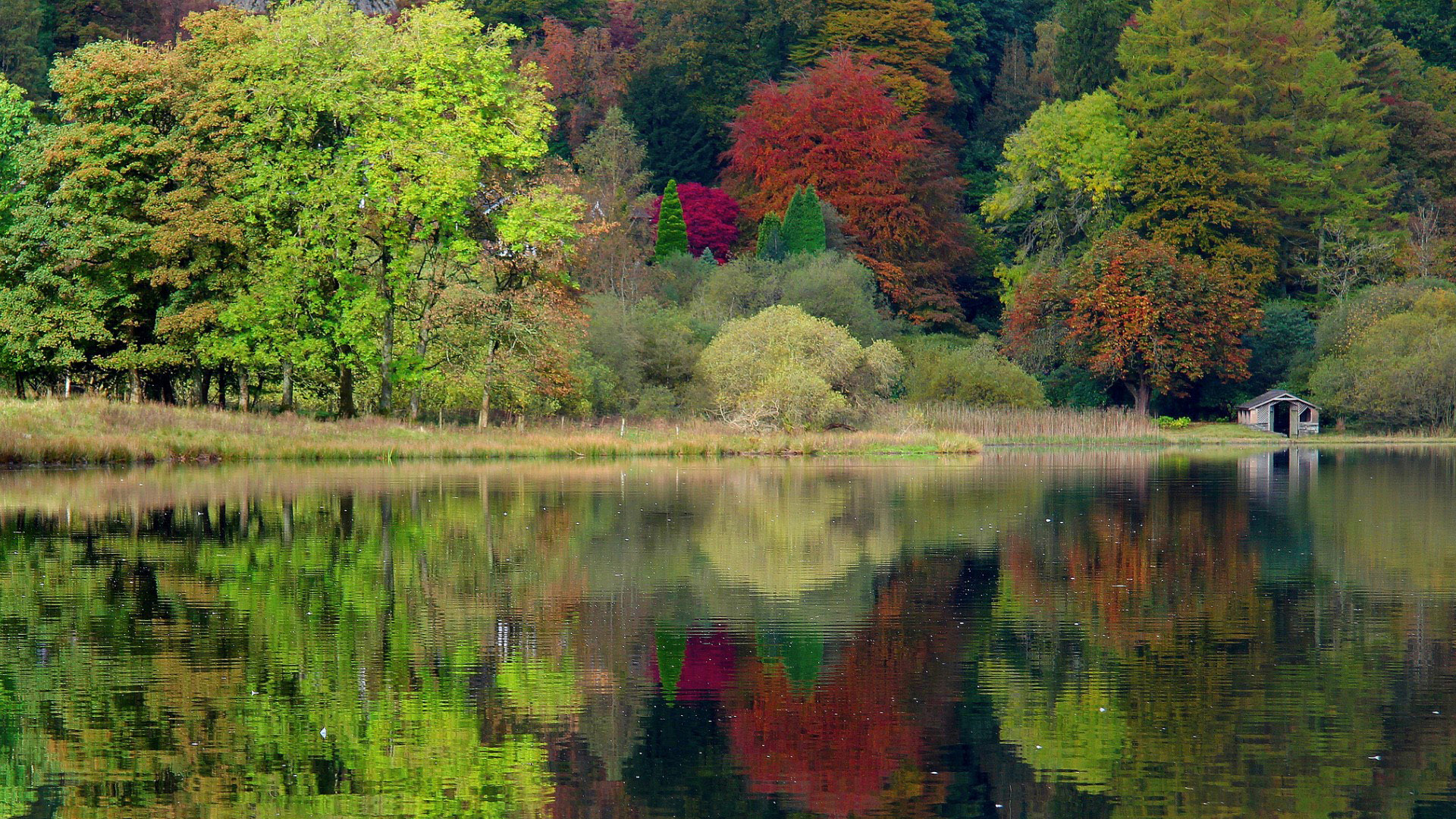 乡村别墅湖畔早晨宁静唯美意境风景免费电脑壁纸下载