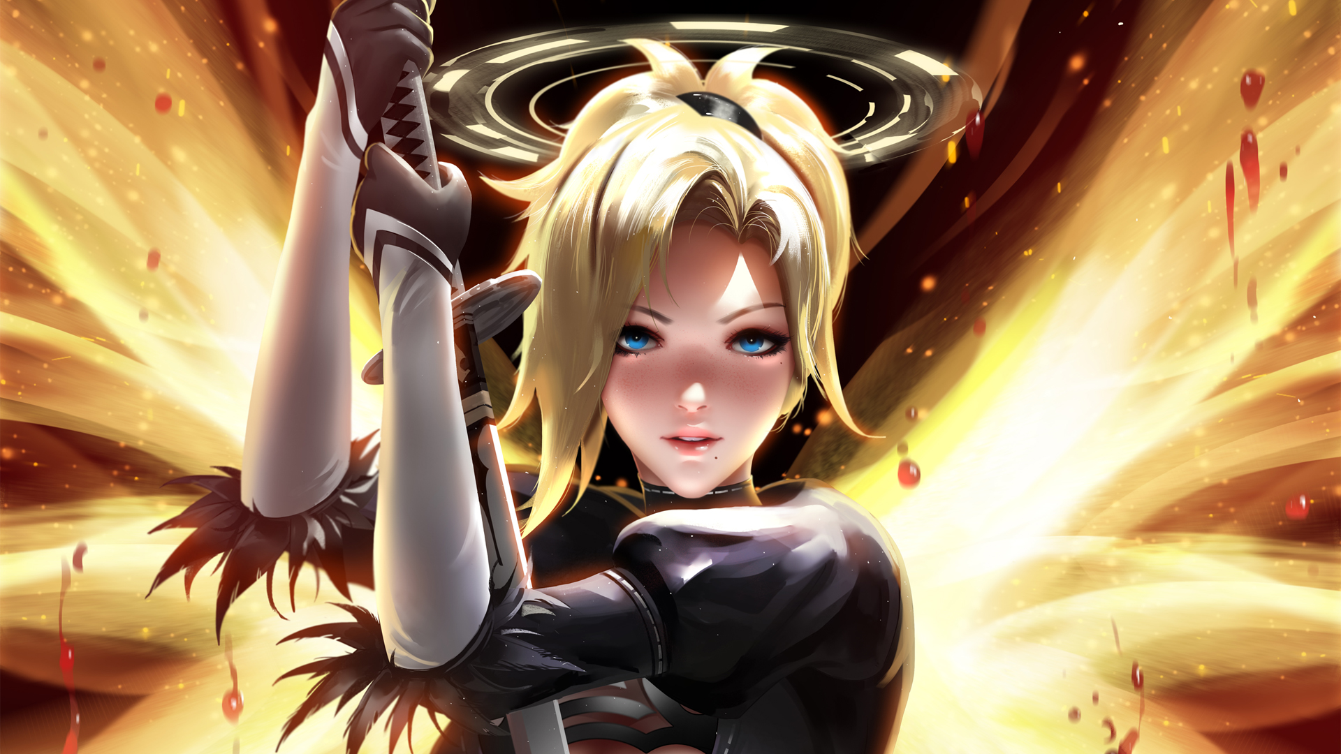 AI绘画水墨三玄色炫焰赛博风动漫女孩免费电脑壁纸下载