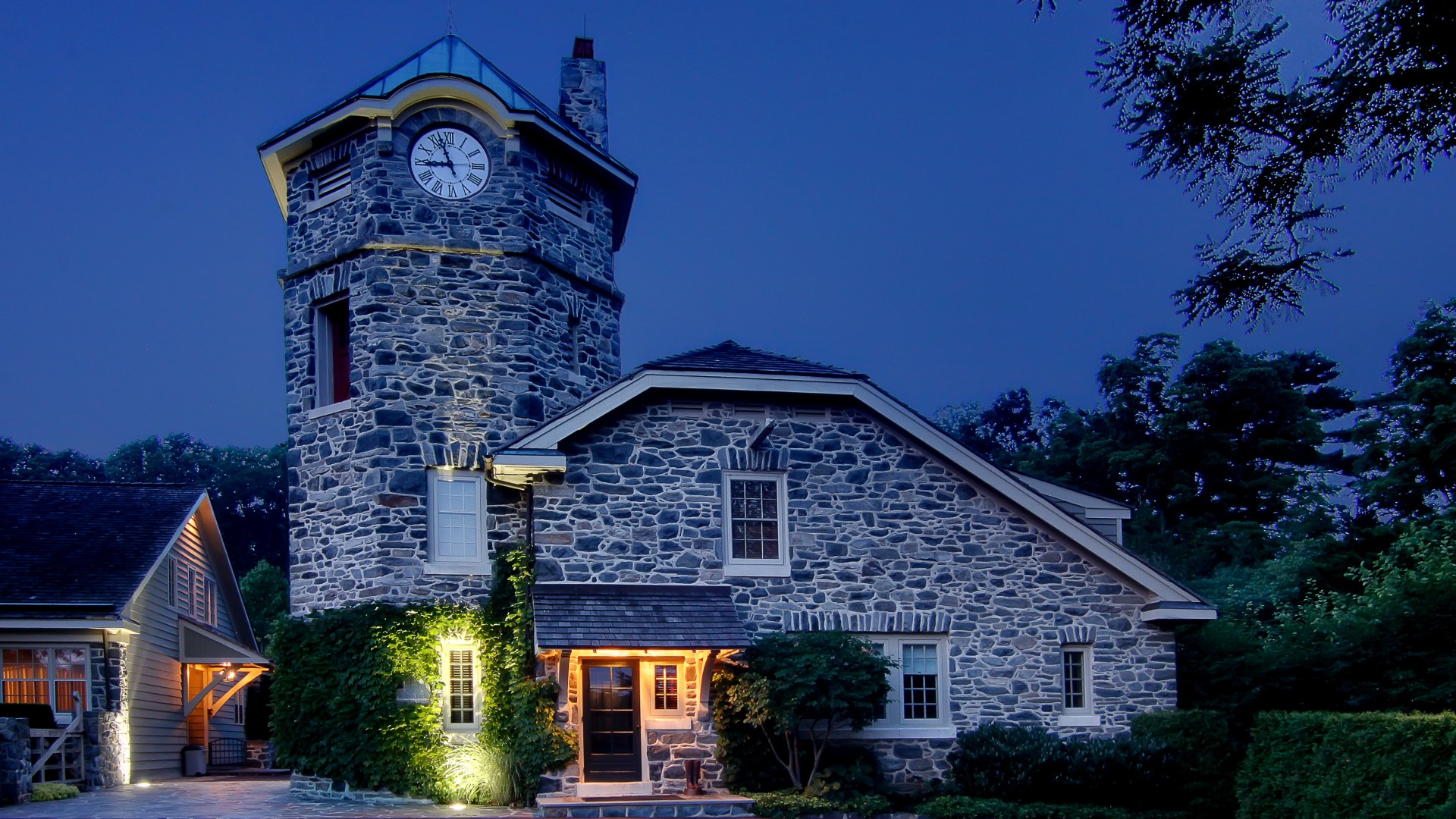 冬天雪夜山树星空风景免费电脑壁纸高清下载