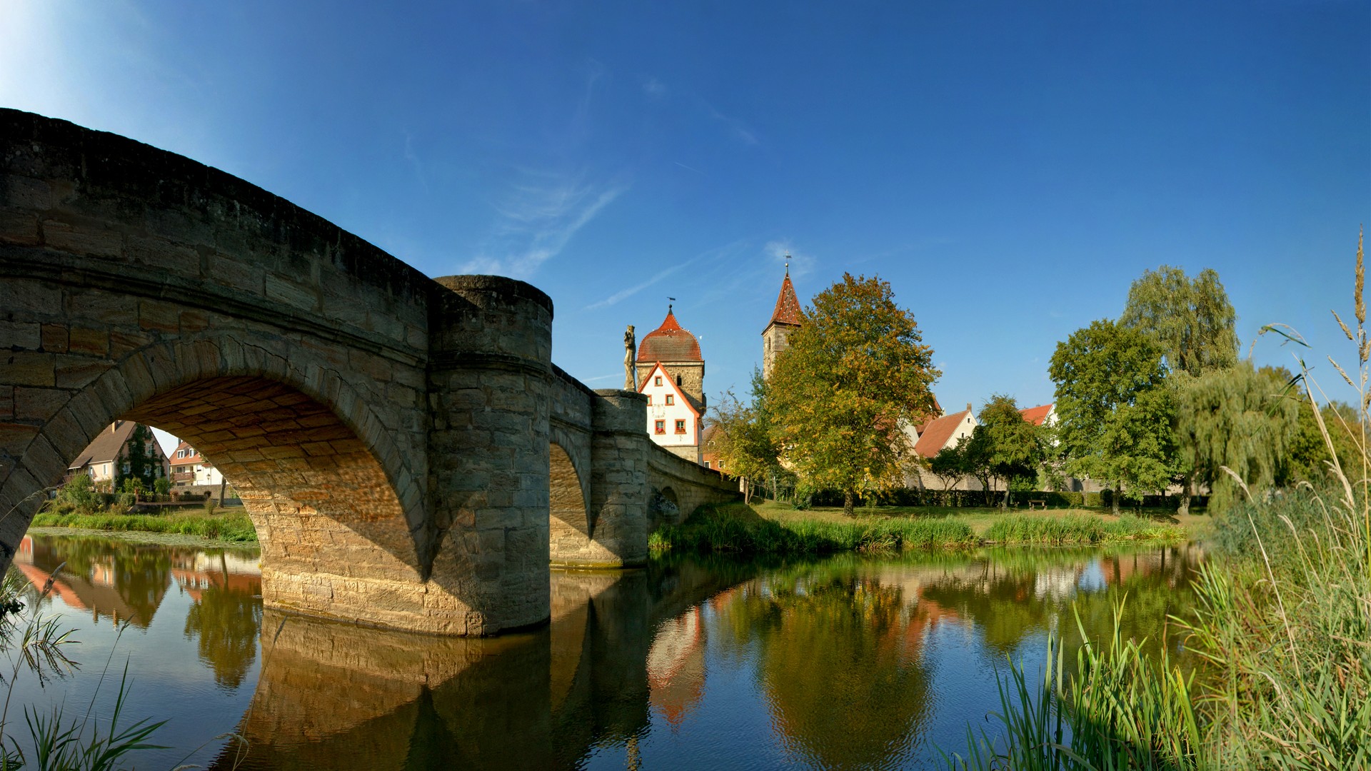 德国巴伐利亚阿尔卑斯山脉秋天树木教堂风景免费电脑壁纸下载
