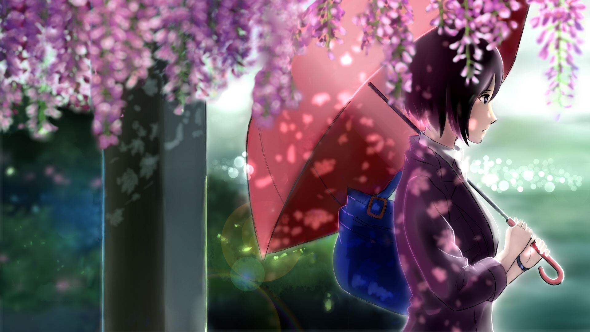 樱花主题茶色长发女子高清动漫电脑壁纸免费下载
