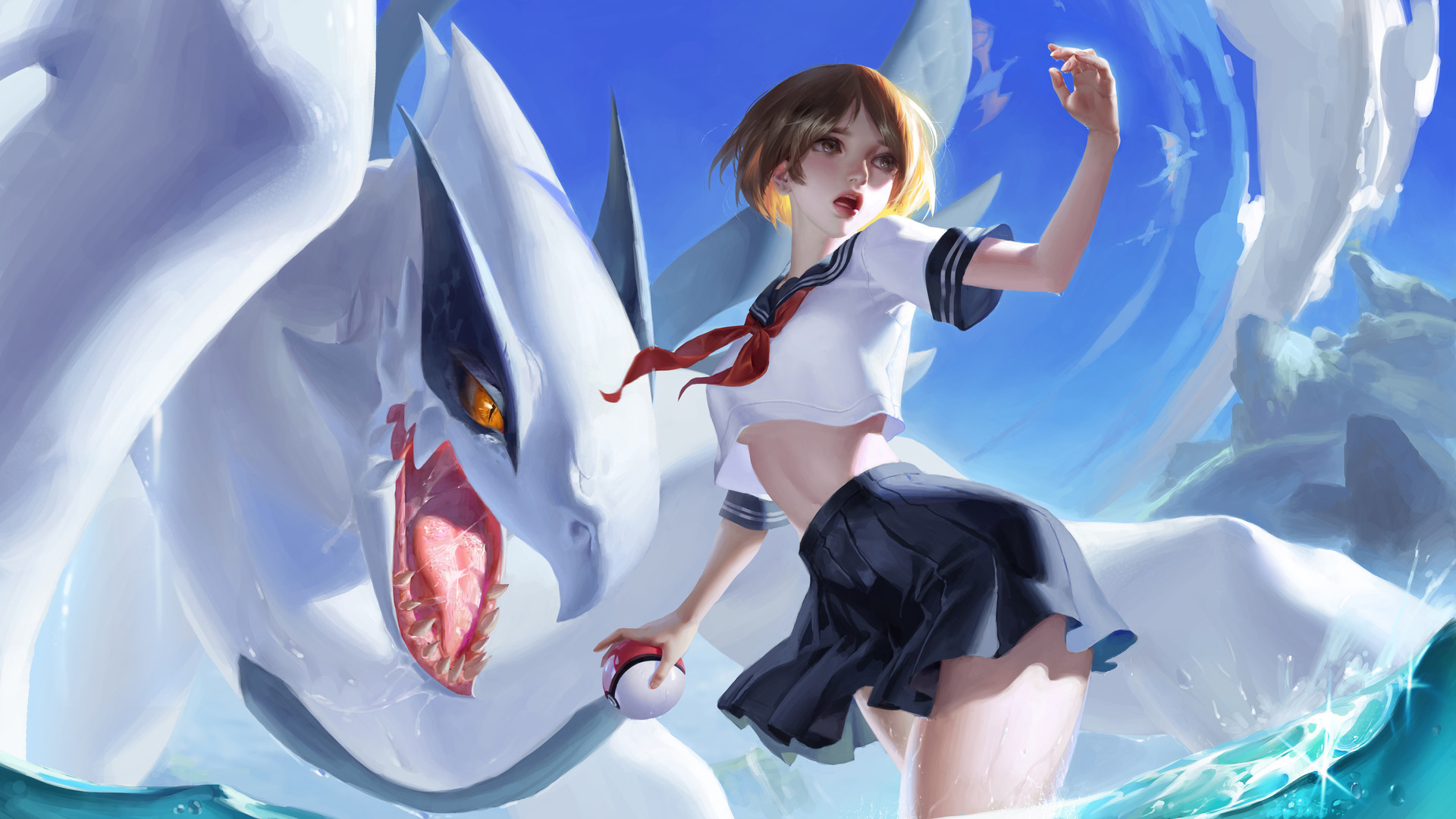 天空大海鲨鱼与二次元动漫美女学生制服风电脑壁纸免费下载
