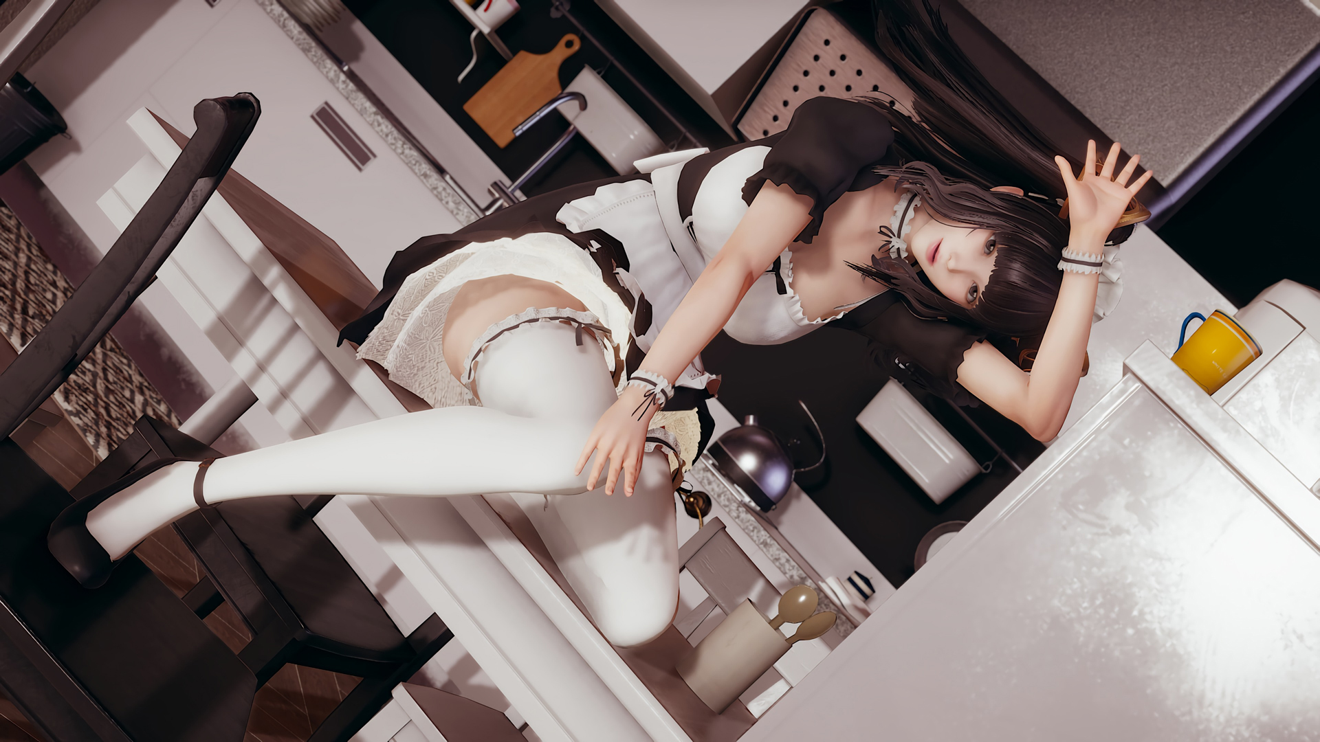 女仆 白色裤袜丝袜 厨房 动漫壁纸
