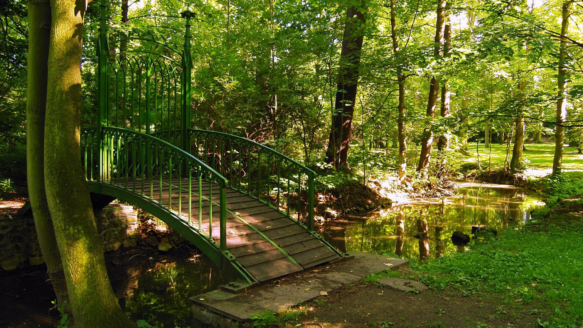 秋天公园长椅树叶壁纸风景 免费电脑壁纸下载