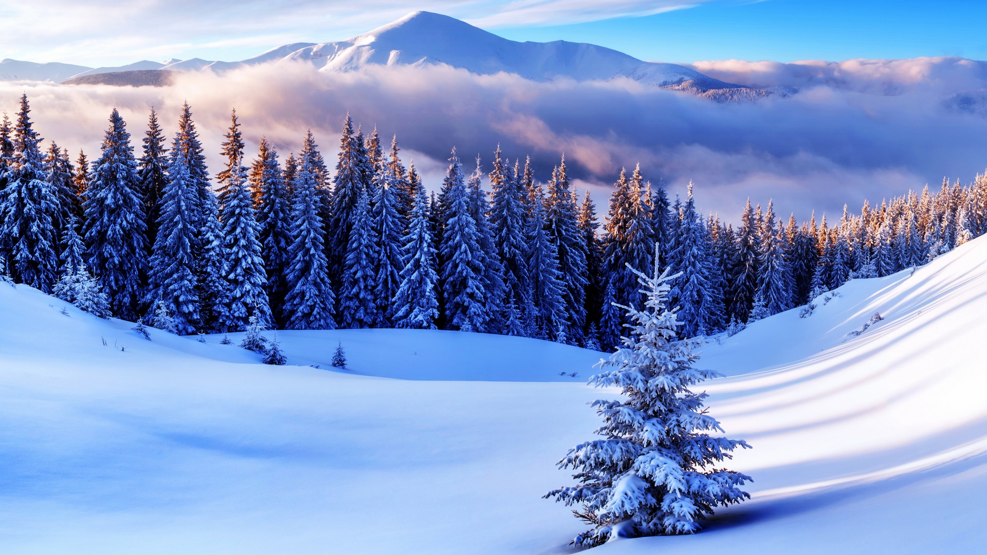 冬天早上雪景树木天空免费电脑壁纸下载