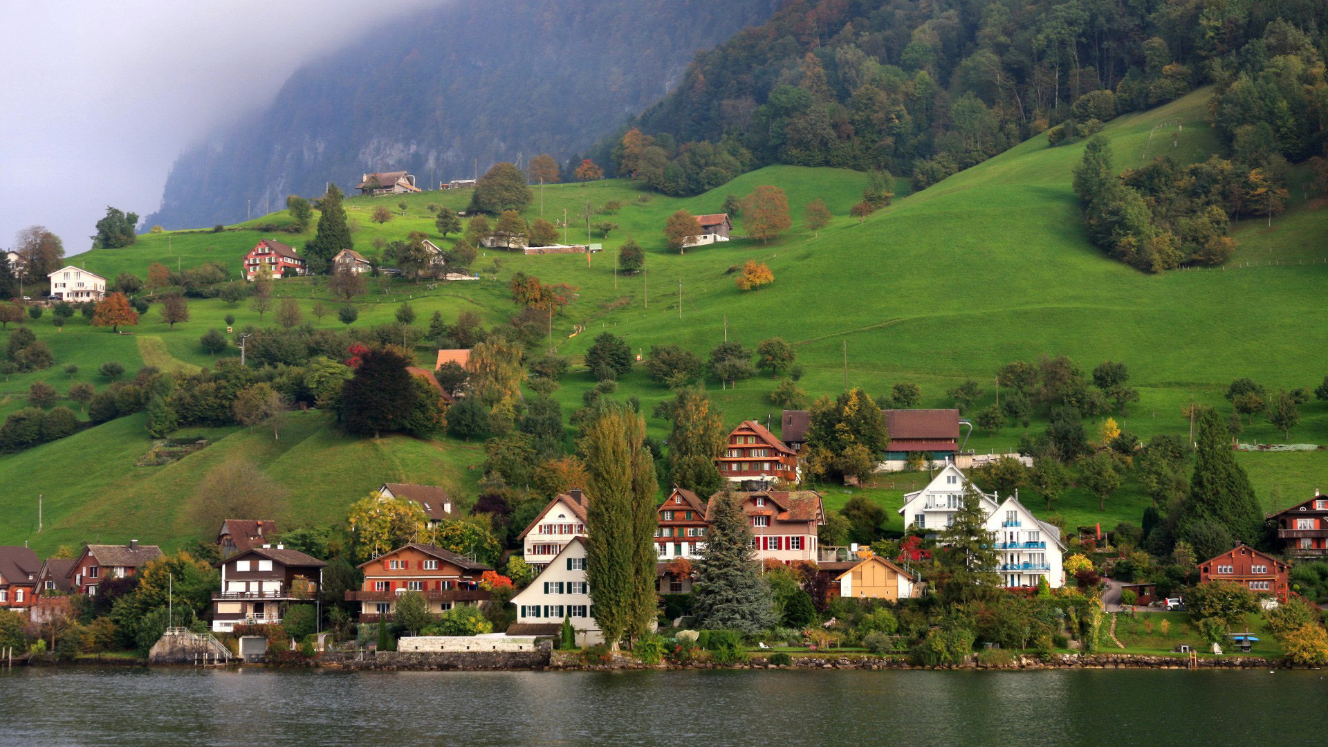 瑞士山坡草地森林自然风景免费电脑壁纸下载