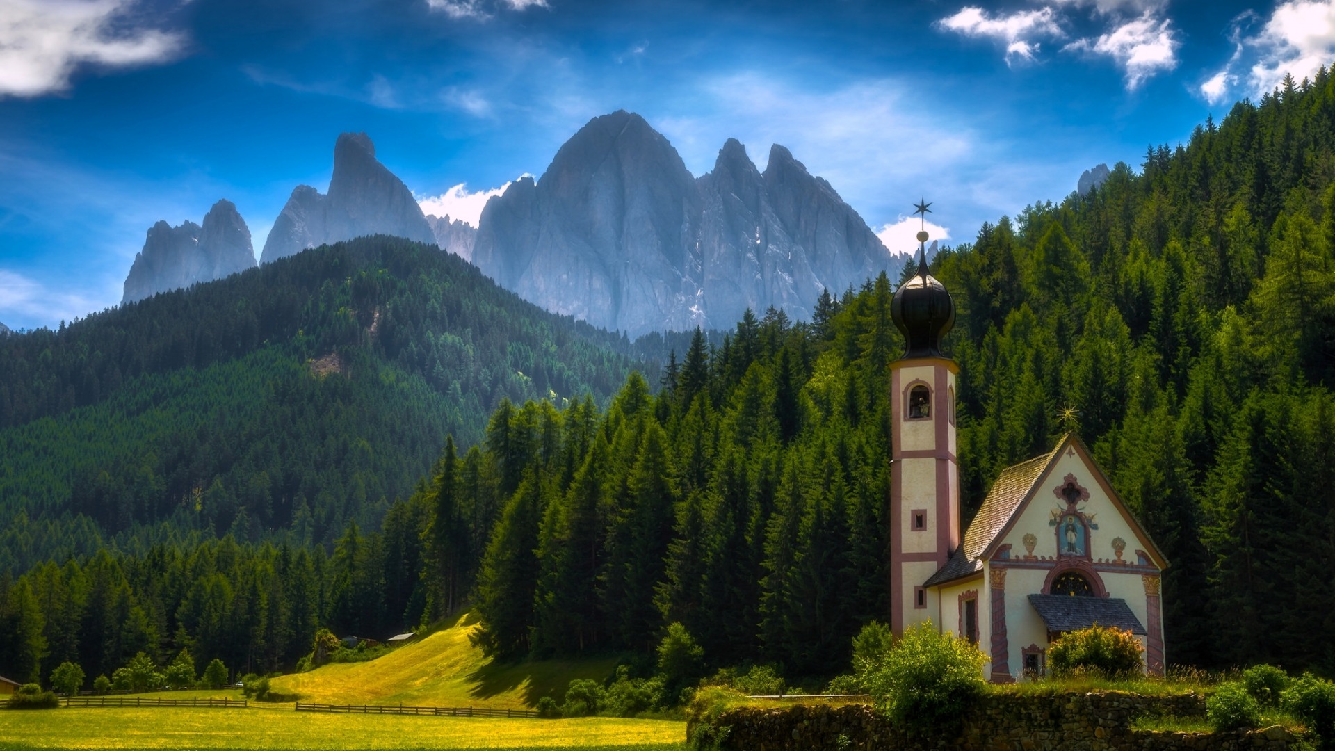 山脉路台阶与鲜花草风景免费电脑壁纸下载