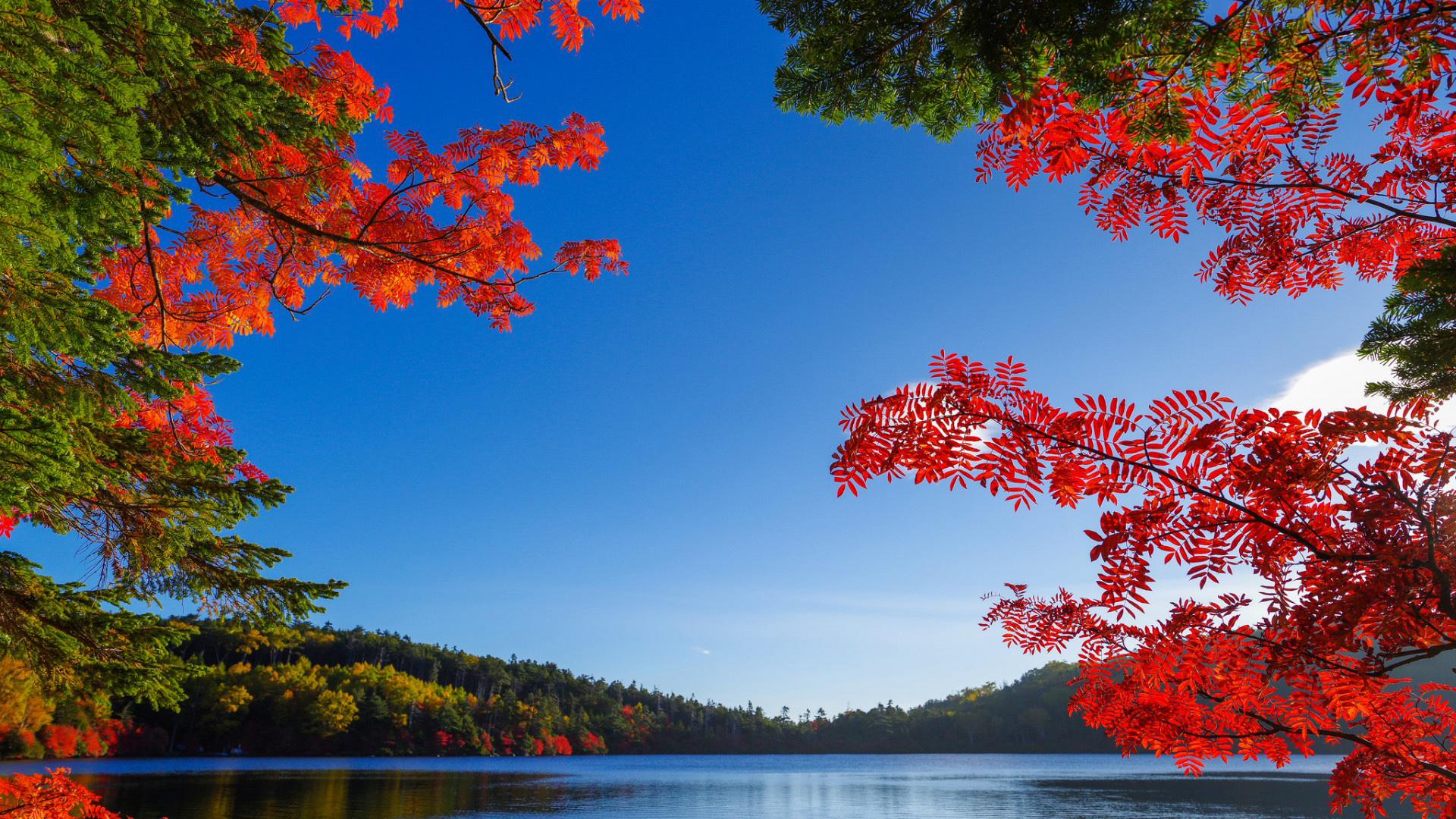 冬天树与天空湖泊水宽屏风景电脑壁纸免费下载