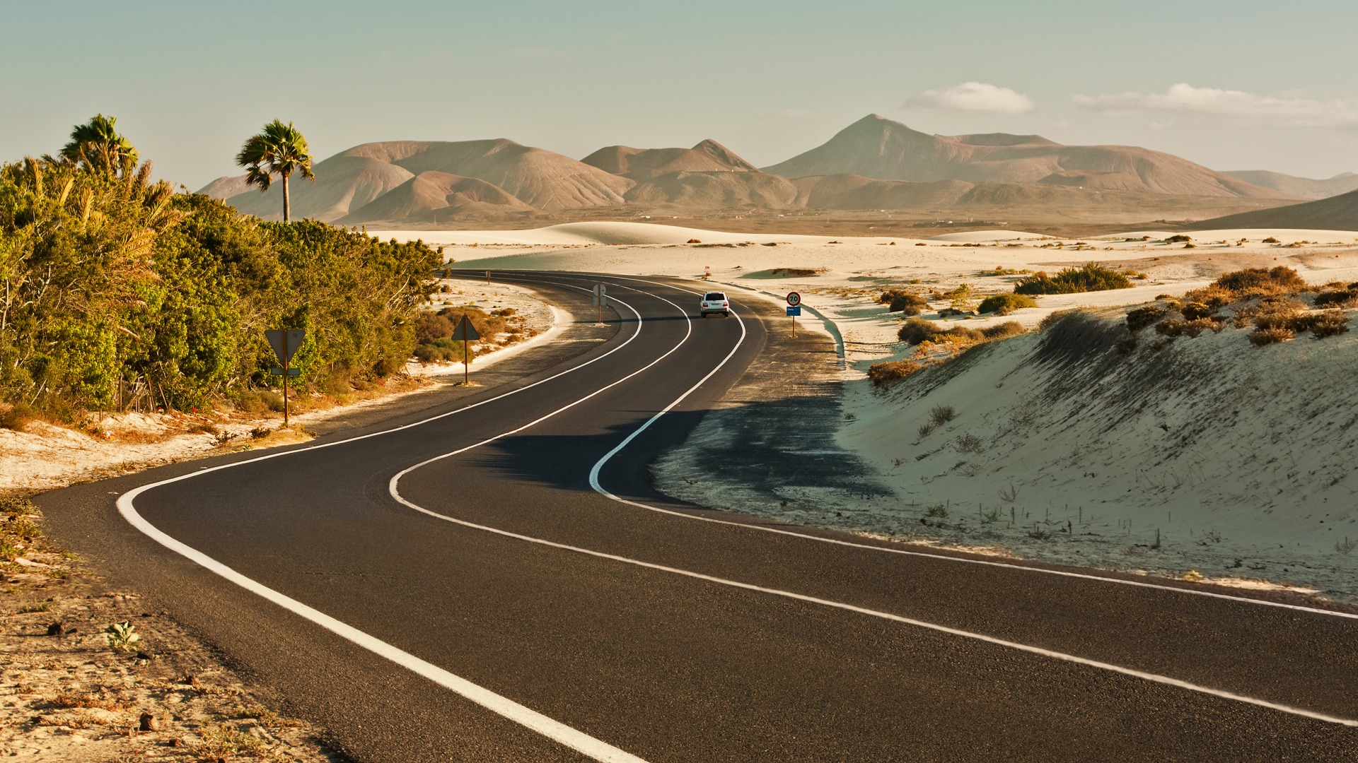 热带海岸风光,阳光沙滩云朵与棕榈树免费电脑壁纸下载