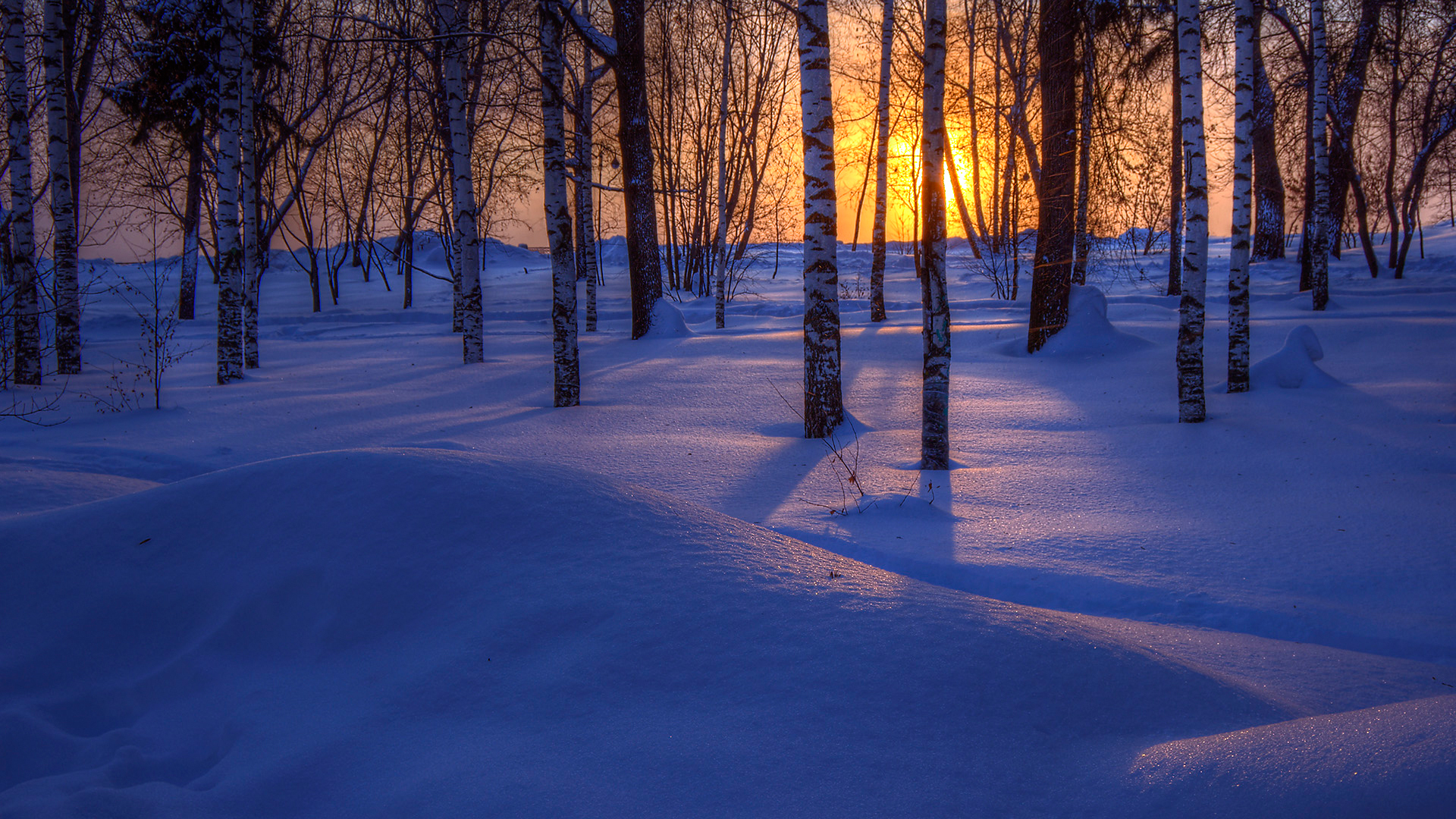 冬天日落雪景树木美丽风景免费电脑壁纸下载