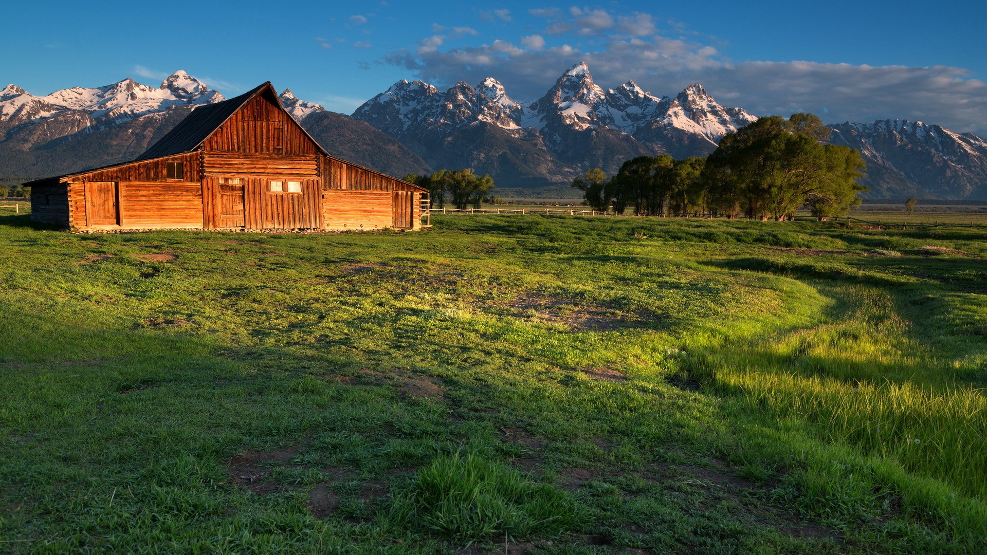 美丽夏日树与草地天空风景免费电脑壁纸下载