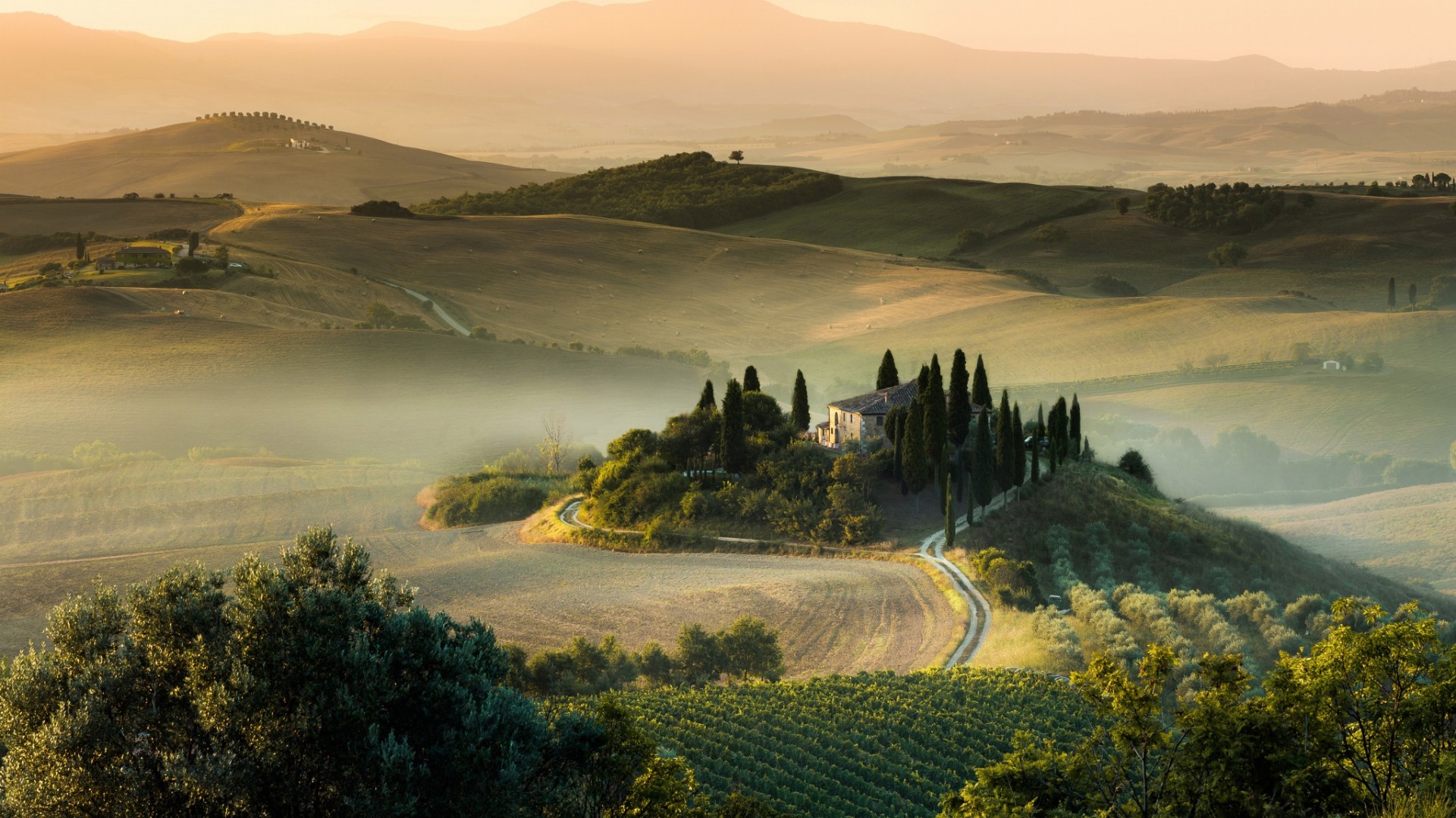 农场谷仓草花雾风景电脑壁纸免费下载