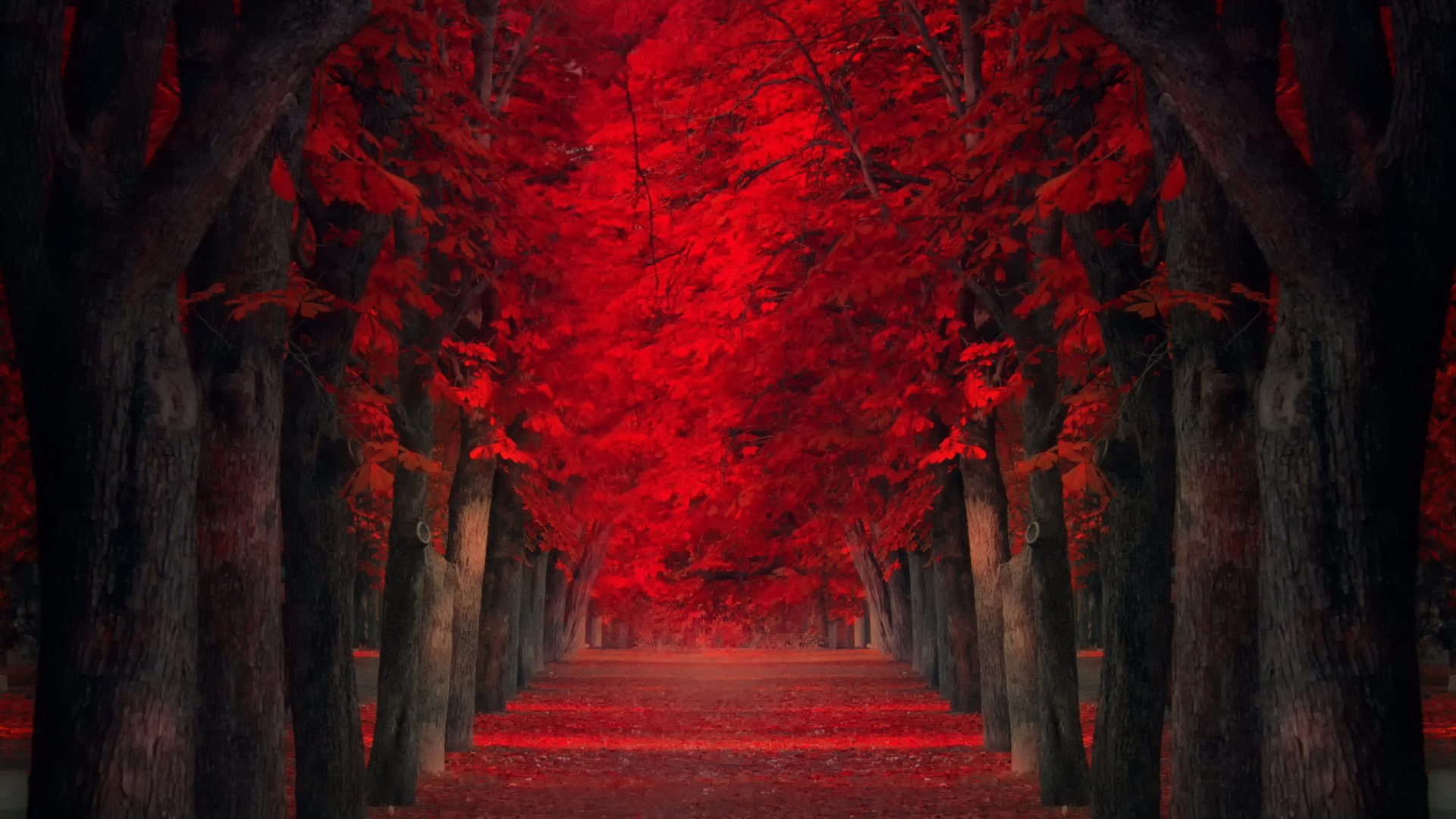 秋天公园自然风景高清红色叶子电脑壁纸免费下载