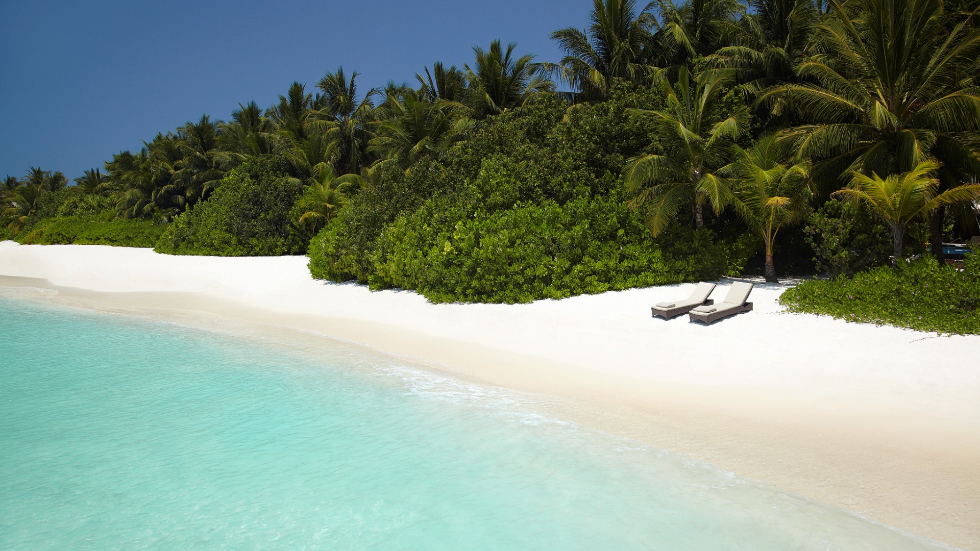 蓝色天空大海沙滩别墅风景免费电脑壁纸下载