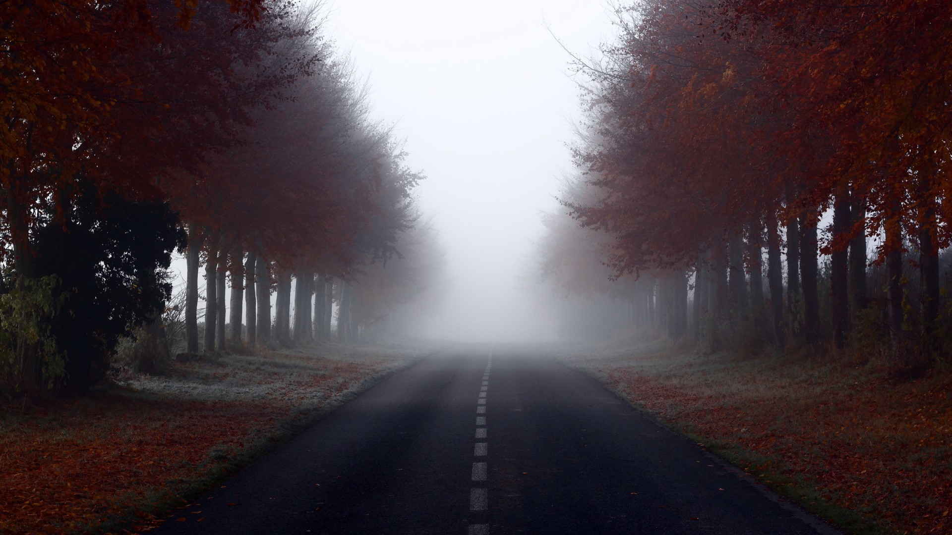秋天山间树影云雾缭绕 仙境风景免费电脑壁纸下载