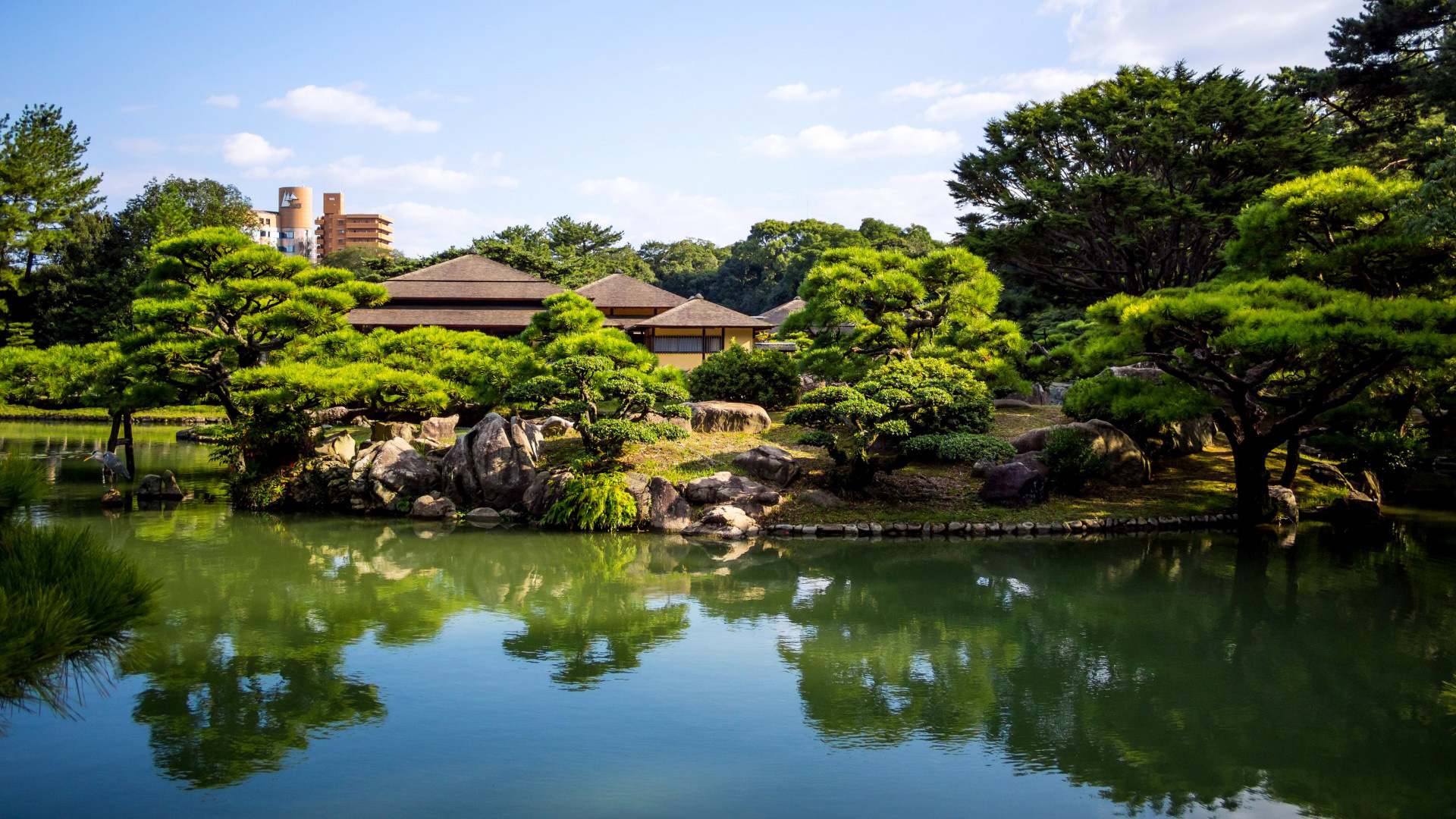 绿色森林山脉湖泊房屋自然风景免费电脑壁纸下载