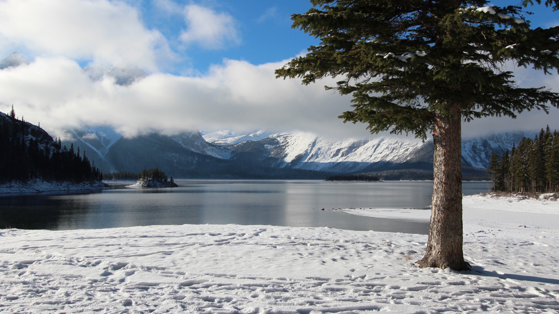 秋天枫树叶子水面倒影风景免费电脑壁纸下载