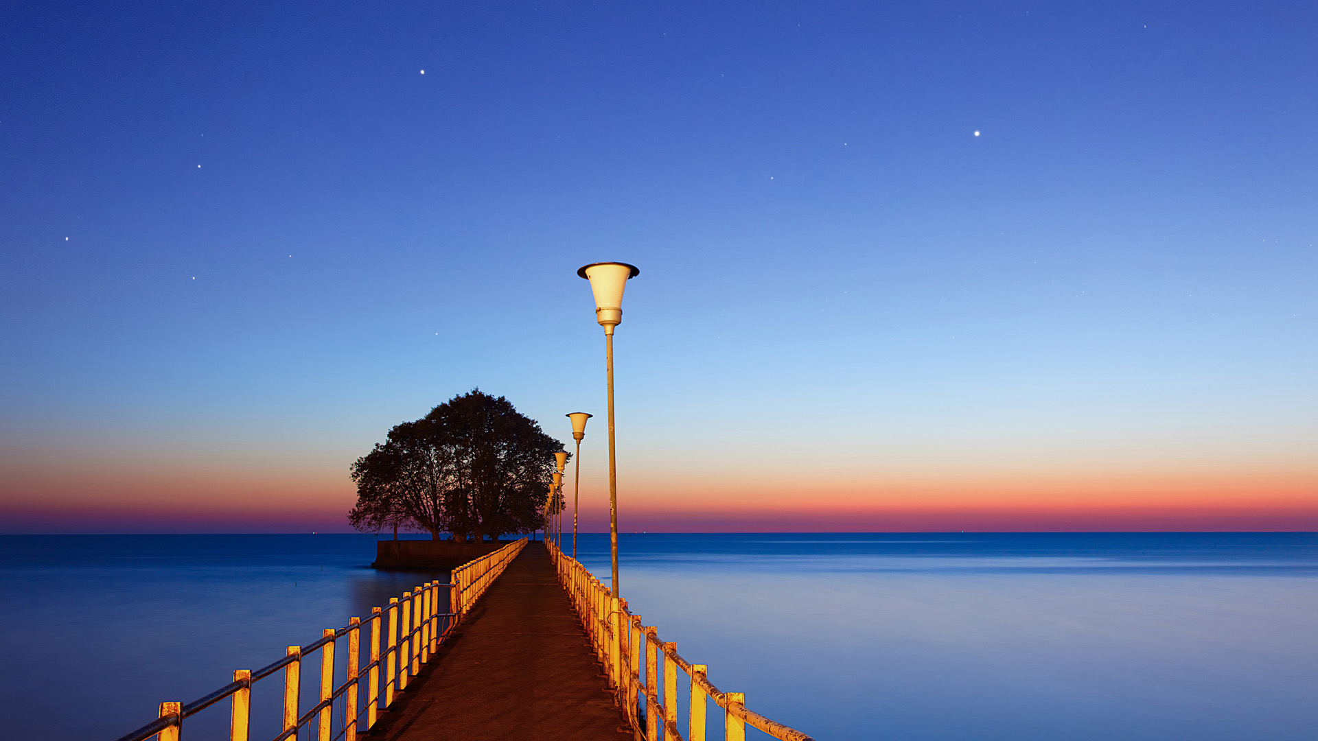 蓝色美丽海洋海边树林道路风景免费电脑壁纸下载