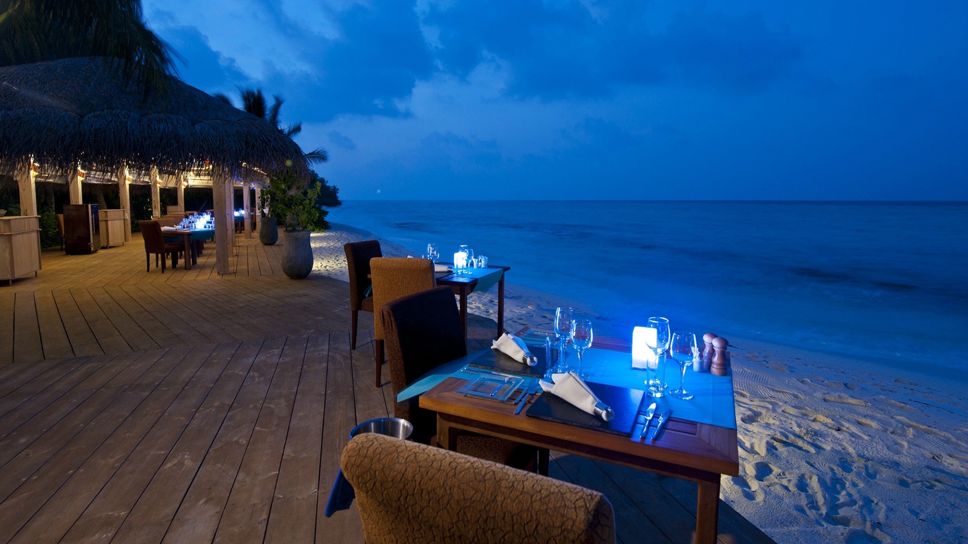 夕阳沙滩花田海边风景免费电脑壁纸高清下载