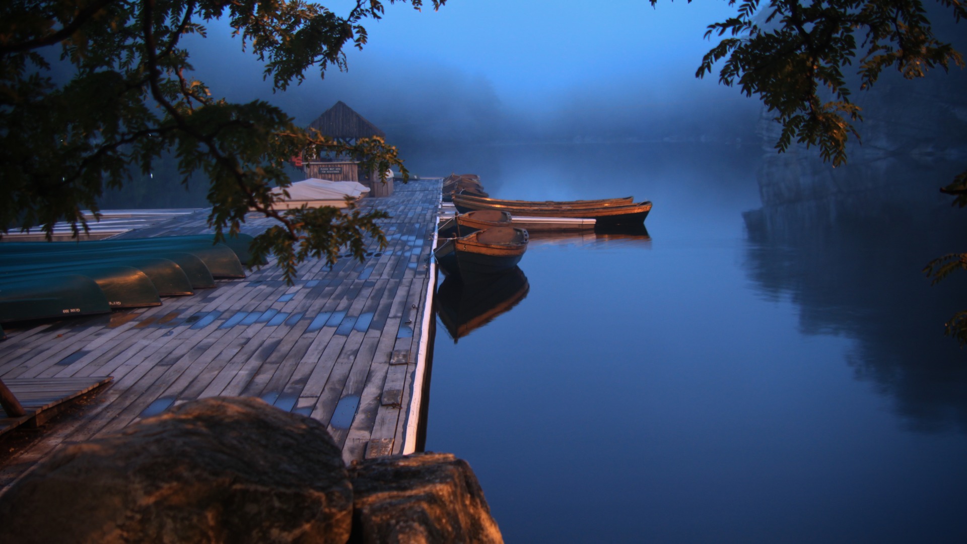 蓝色海水树房子风景免费电脑壁纸高清下载
