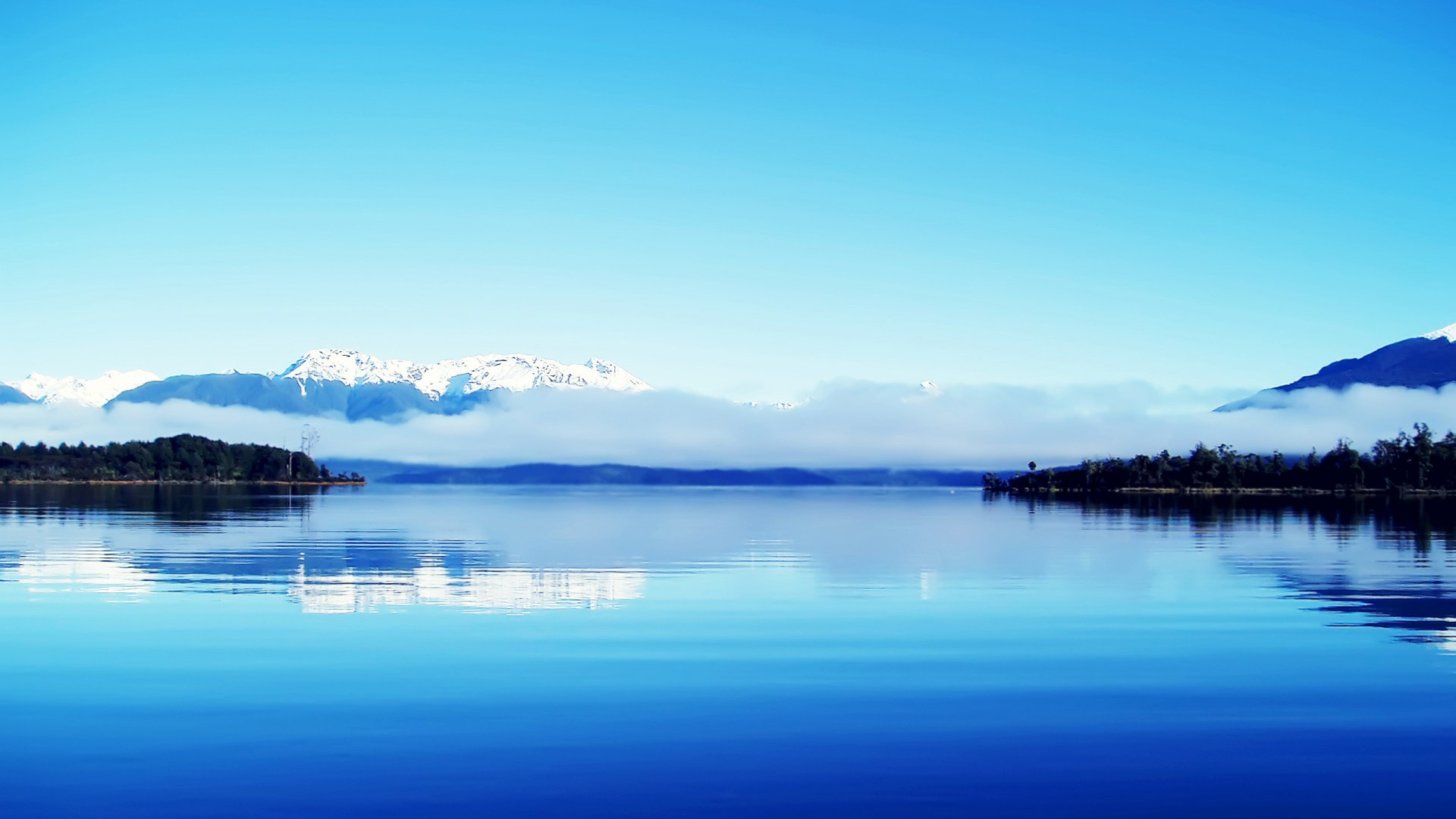 美丽的冬季雪景,树与河流交织的免费电脑壁纸风景下载