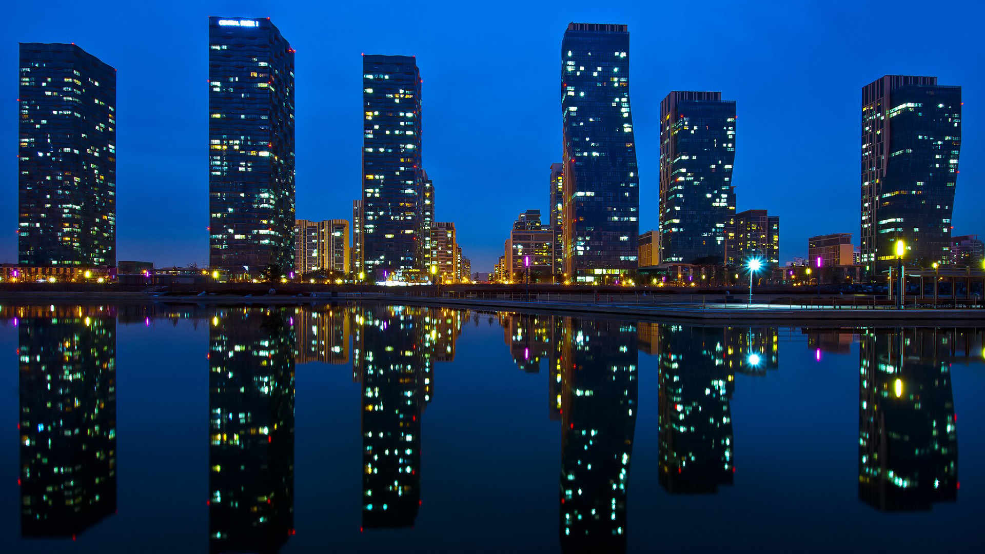 蓝色天空云日落海水沙滩自然风光免费电脑壁纸下载