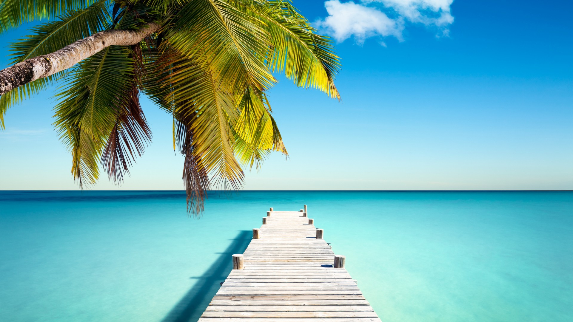 海洋沙滩棕榈树房屋自然风光免费电脑壁纸下载