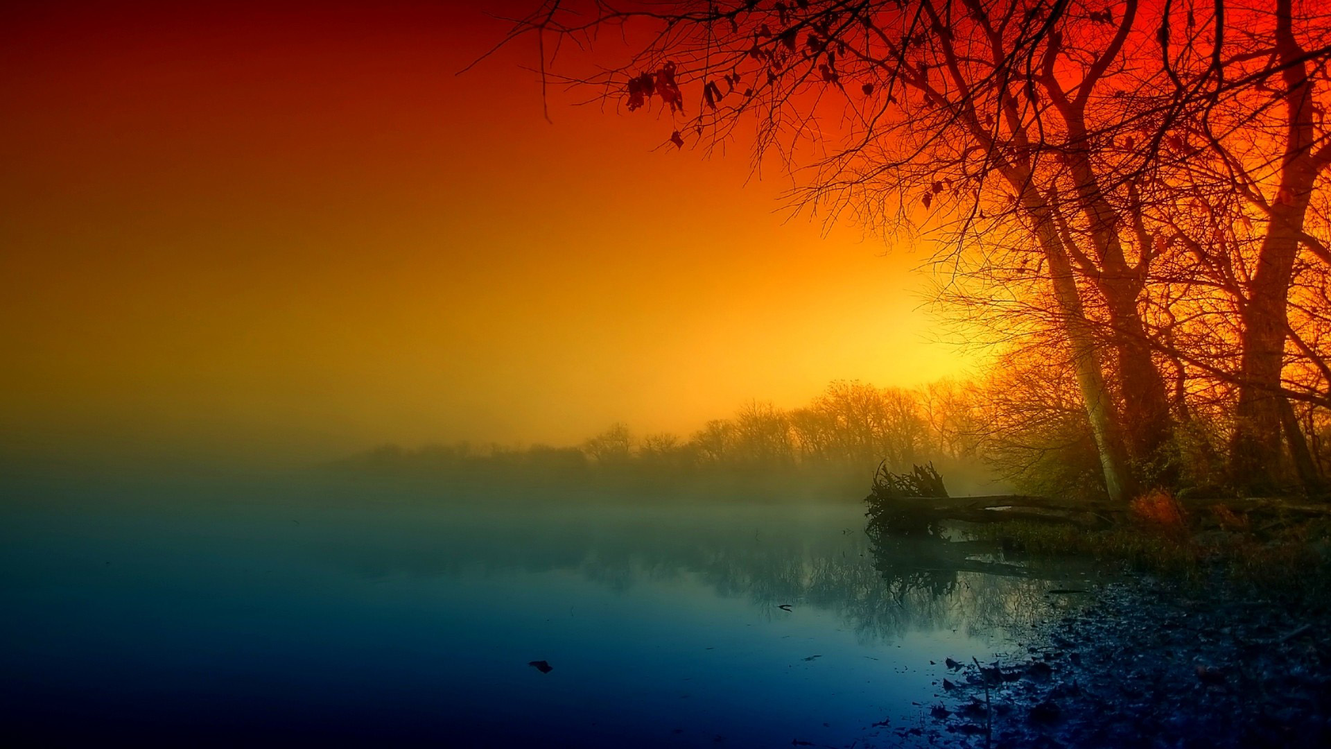 孤独的树倒影湖中央 唯美山景免费电脑风景壁纸下载