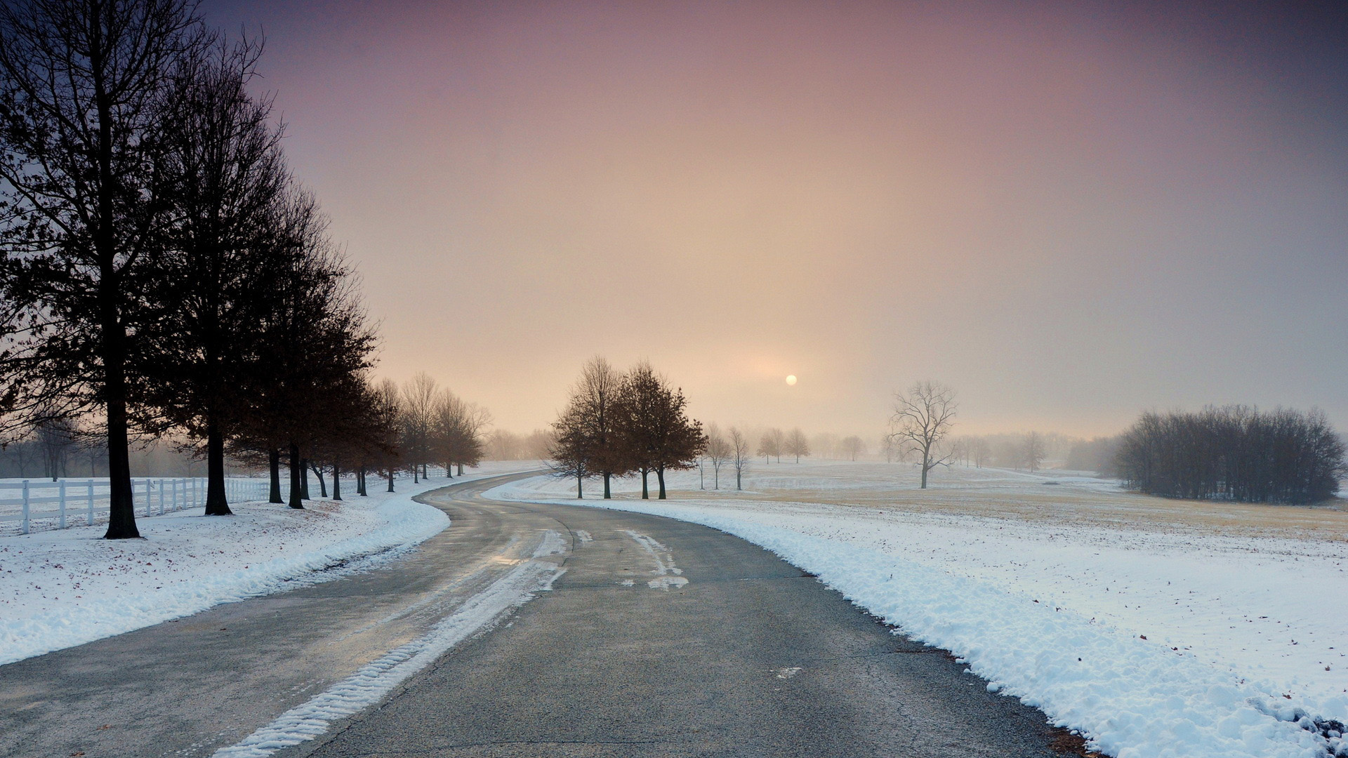 冬天树林小路自然风景免费电脑壁纸高清下载