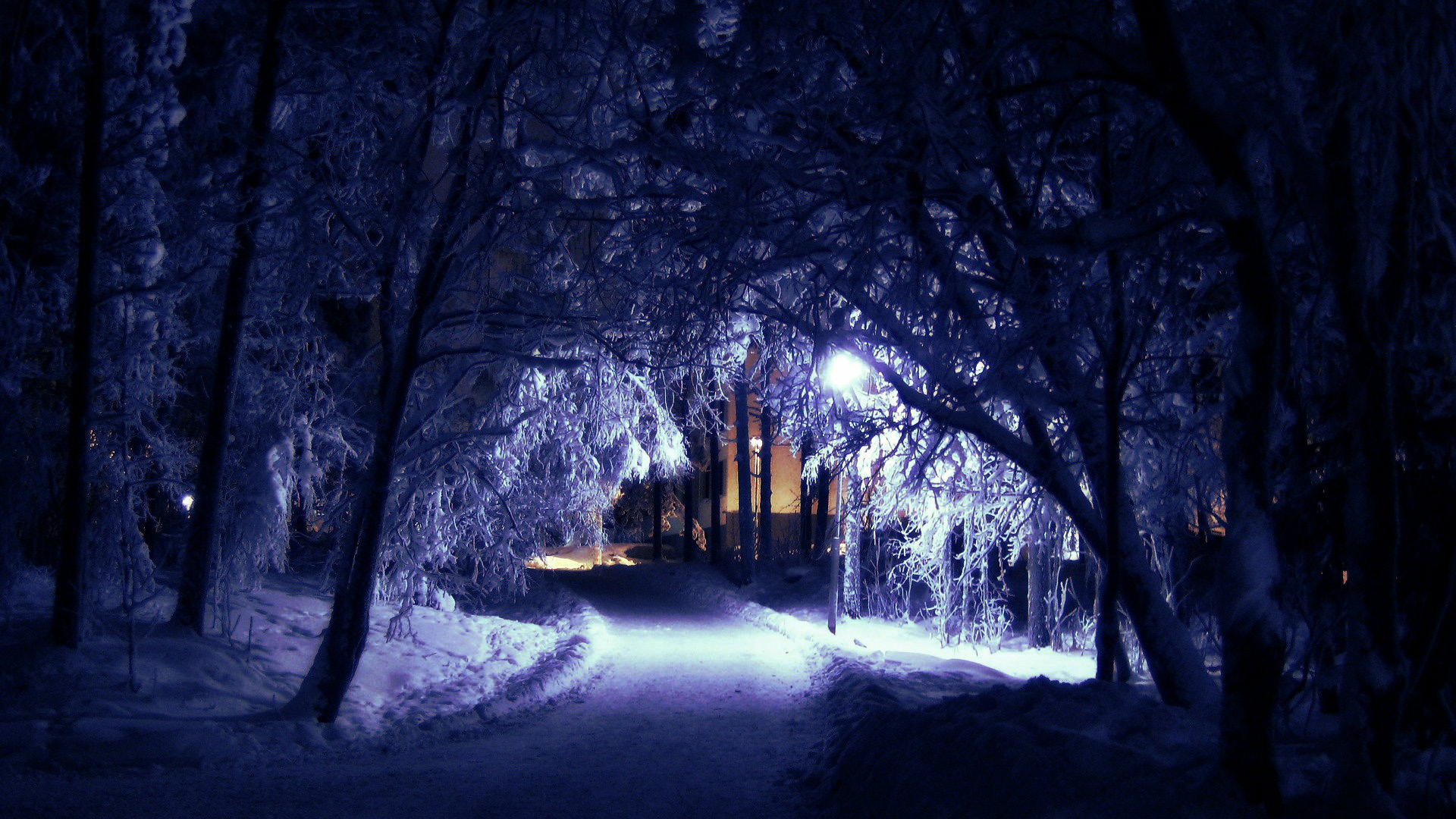 冬天雪树路灯夜景免费电脑桌面壁纸下载