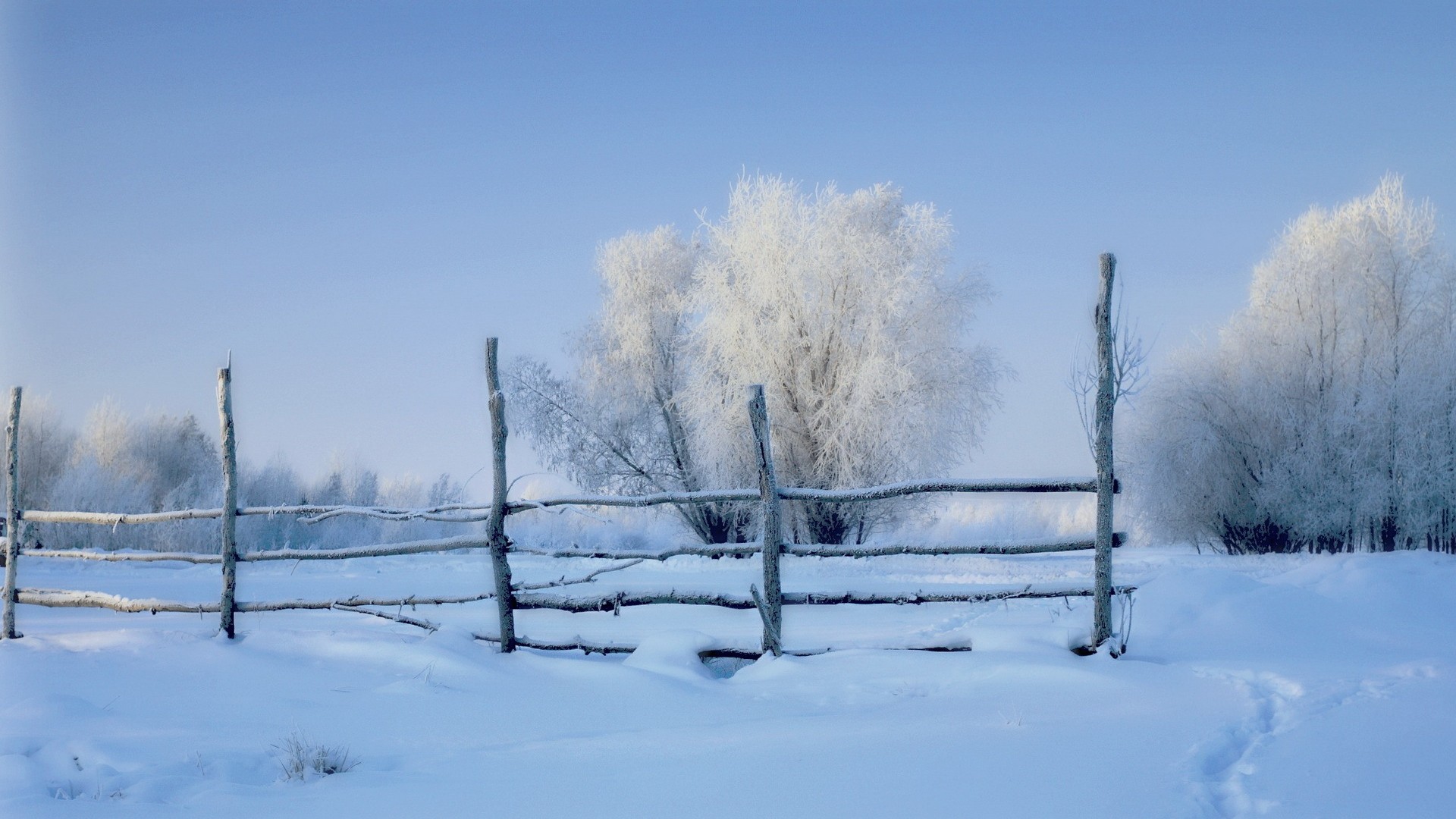 冬天雪景树木雪堆高清风景壁纸免费电脑下载