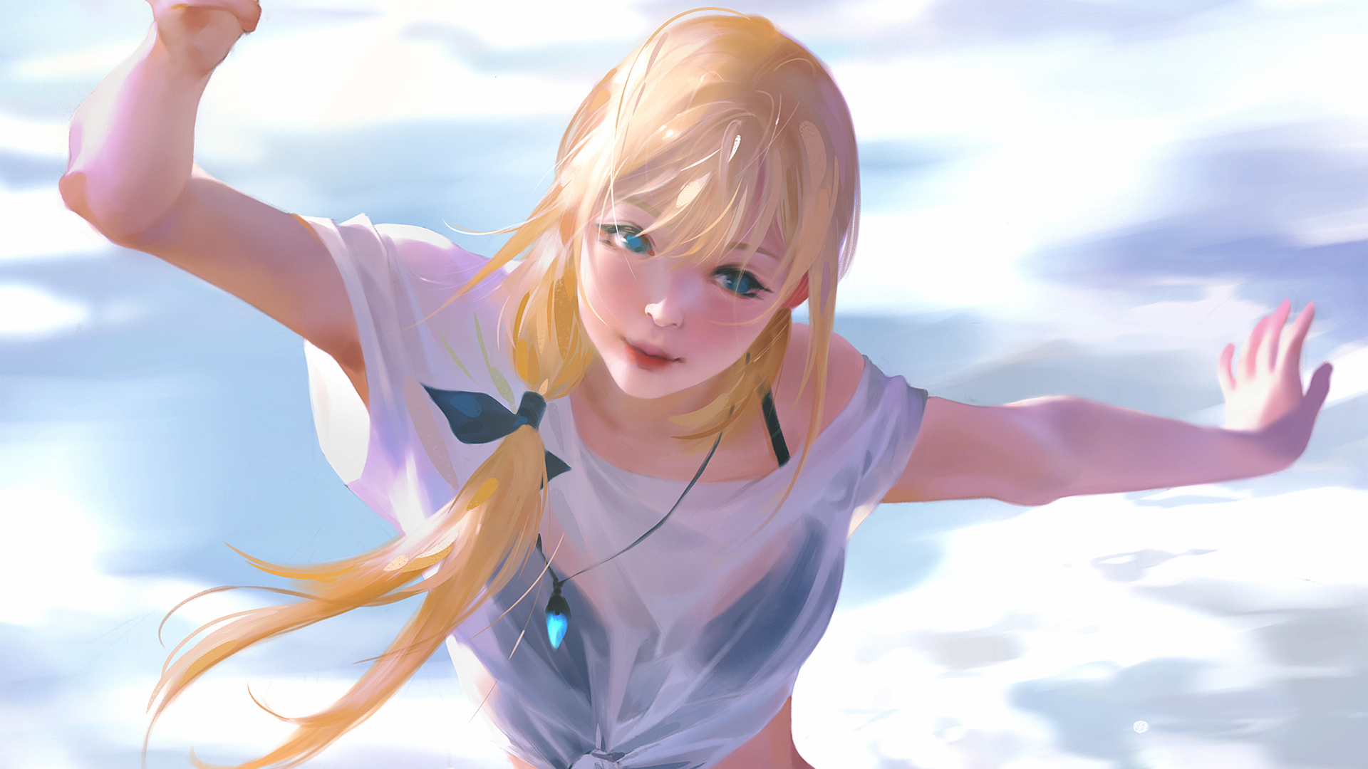 海边可爱女孩高清动漫壁纸 免费电脑壁纸下载