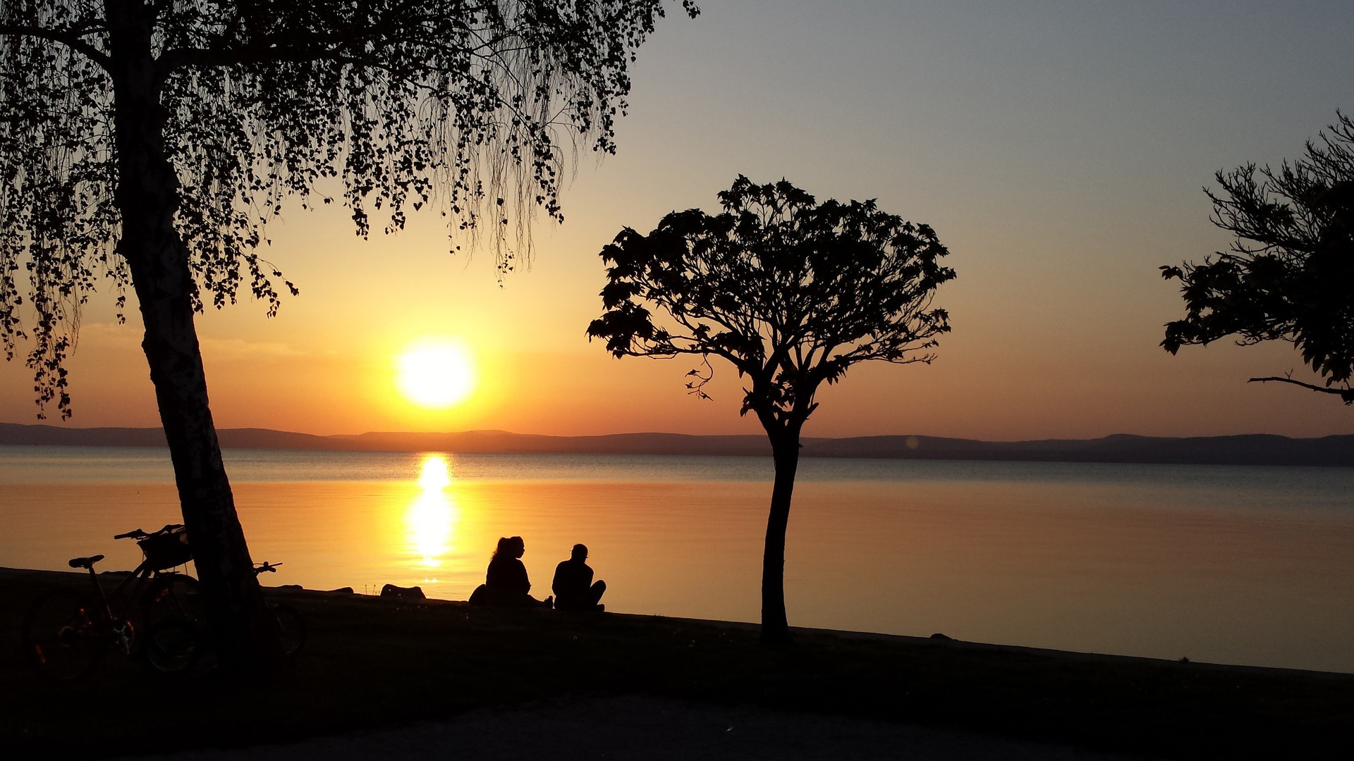 晚上日落天空云映湖水免费电脑壁纸风景下载