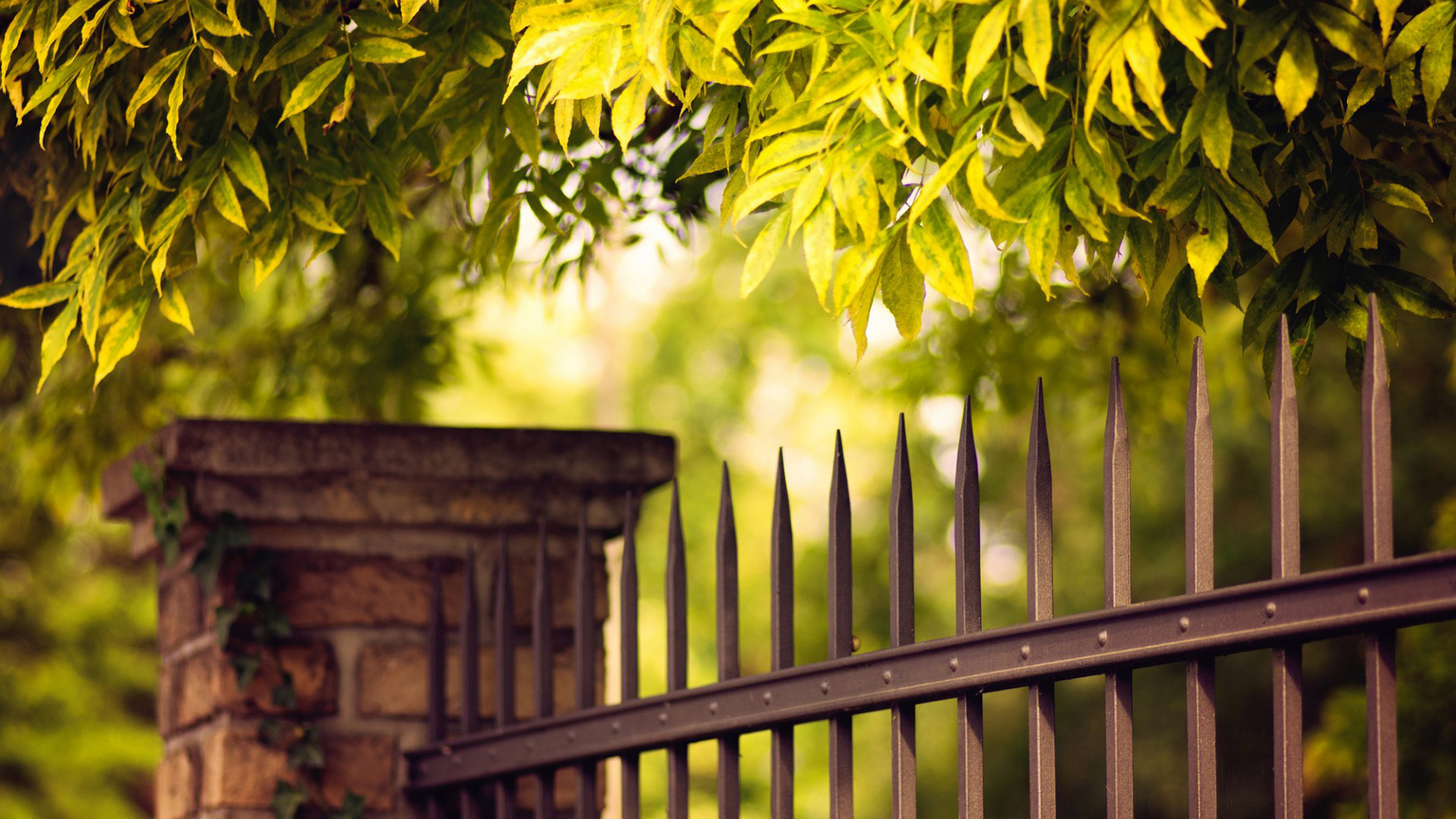 秋日阳光森林道路树叶 免费秋天风景电脑壁纸下载