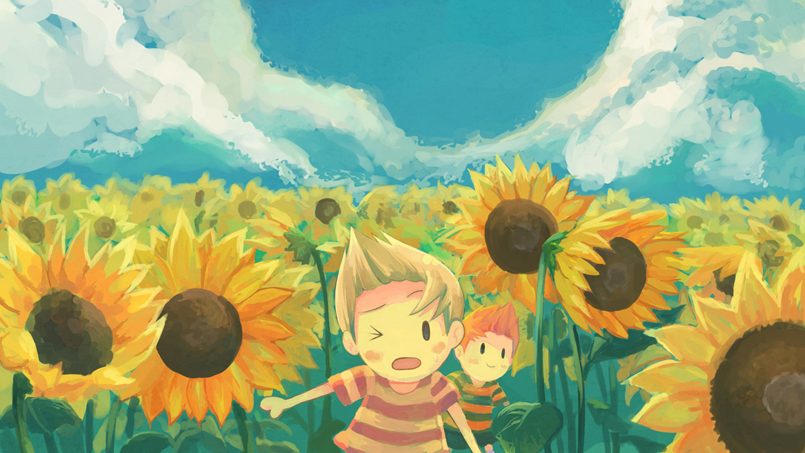 蓝天白云绿树草地鲜花小清新风景电脑壁纸免费下载