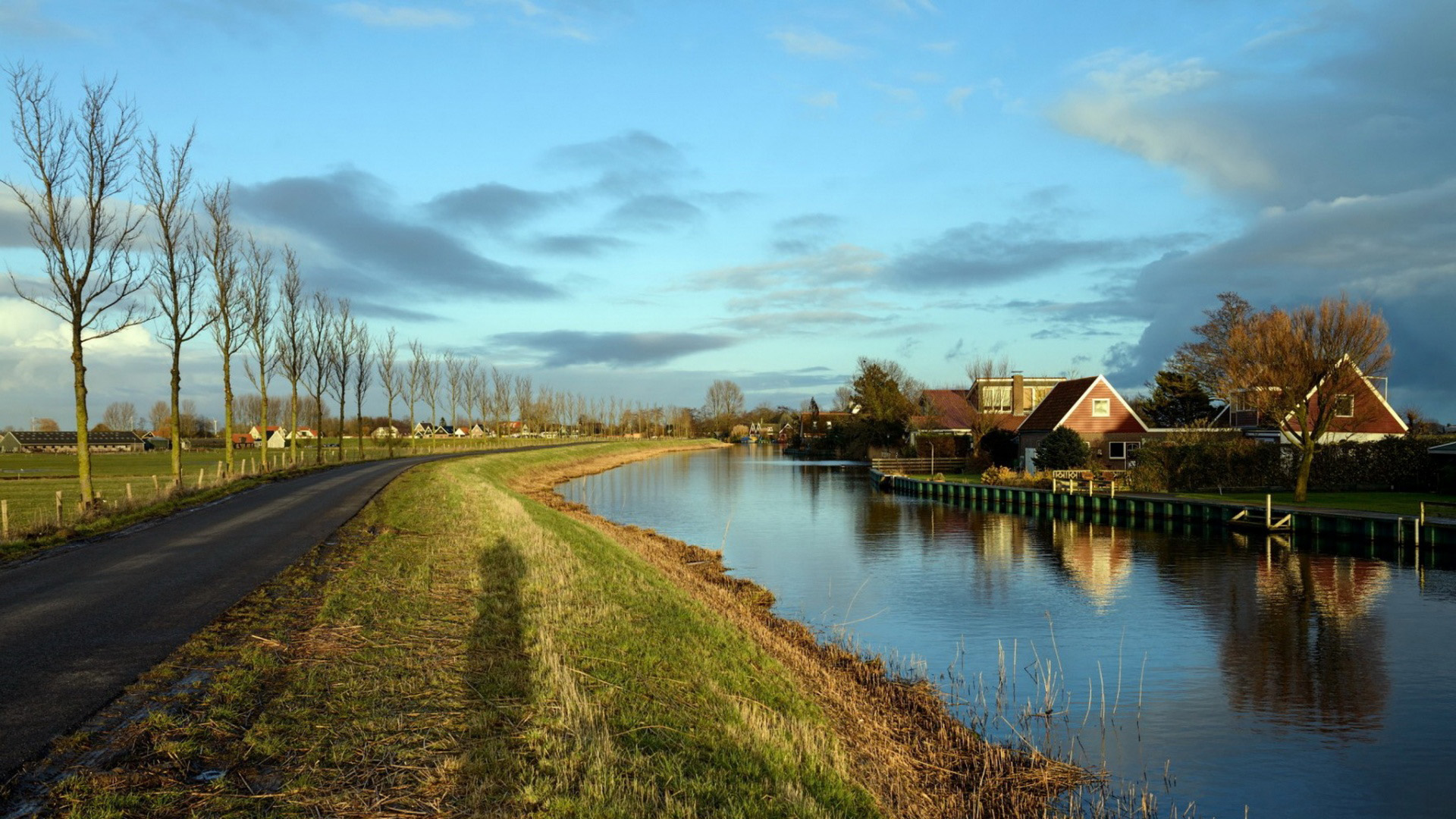 秋天树林道路小河风景免费电脑壁纸高清下载