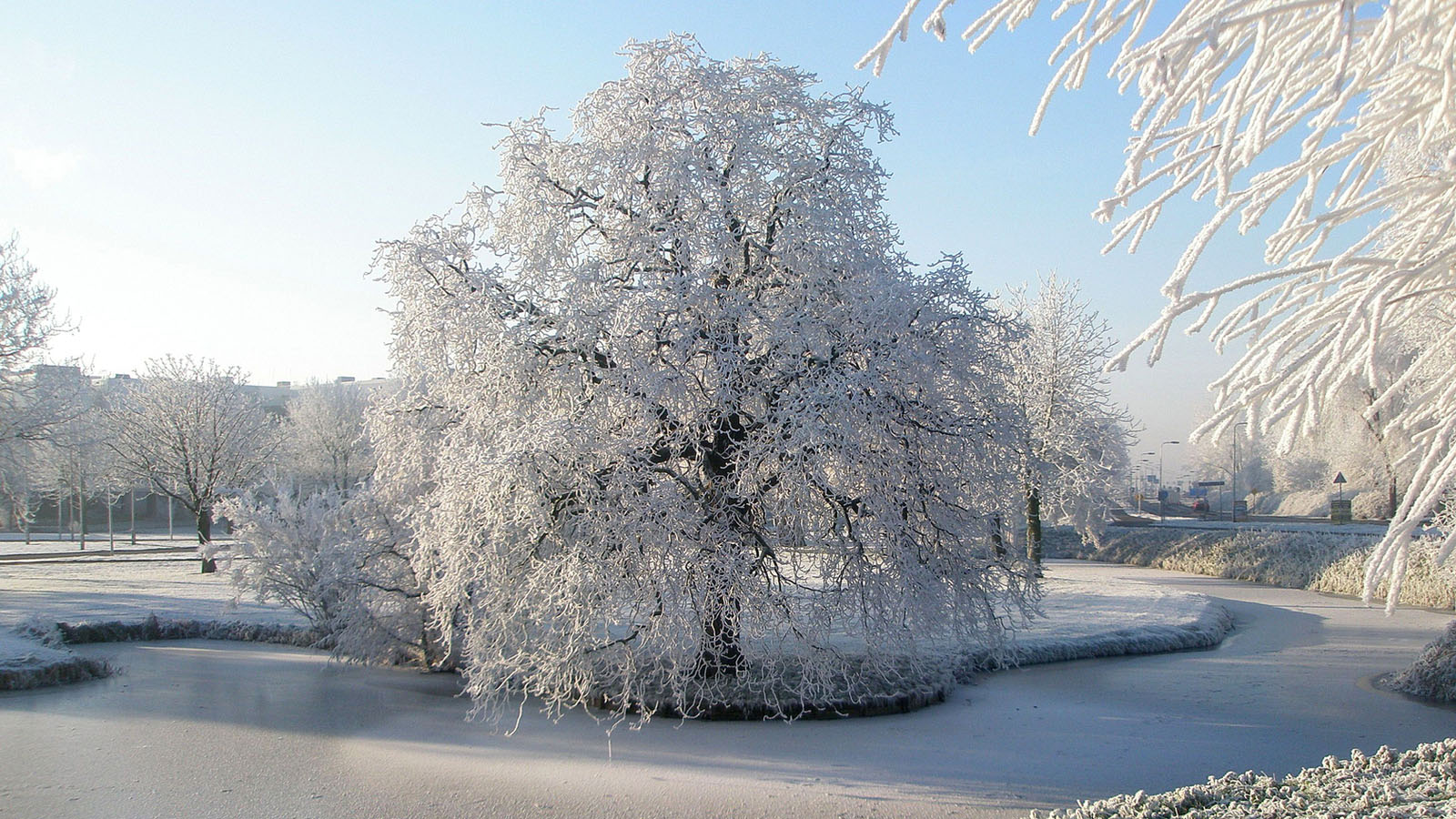 冬季雪景树林河流倒影高清风景免费电脑壁纸下载