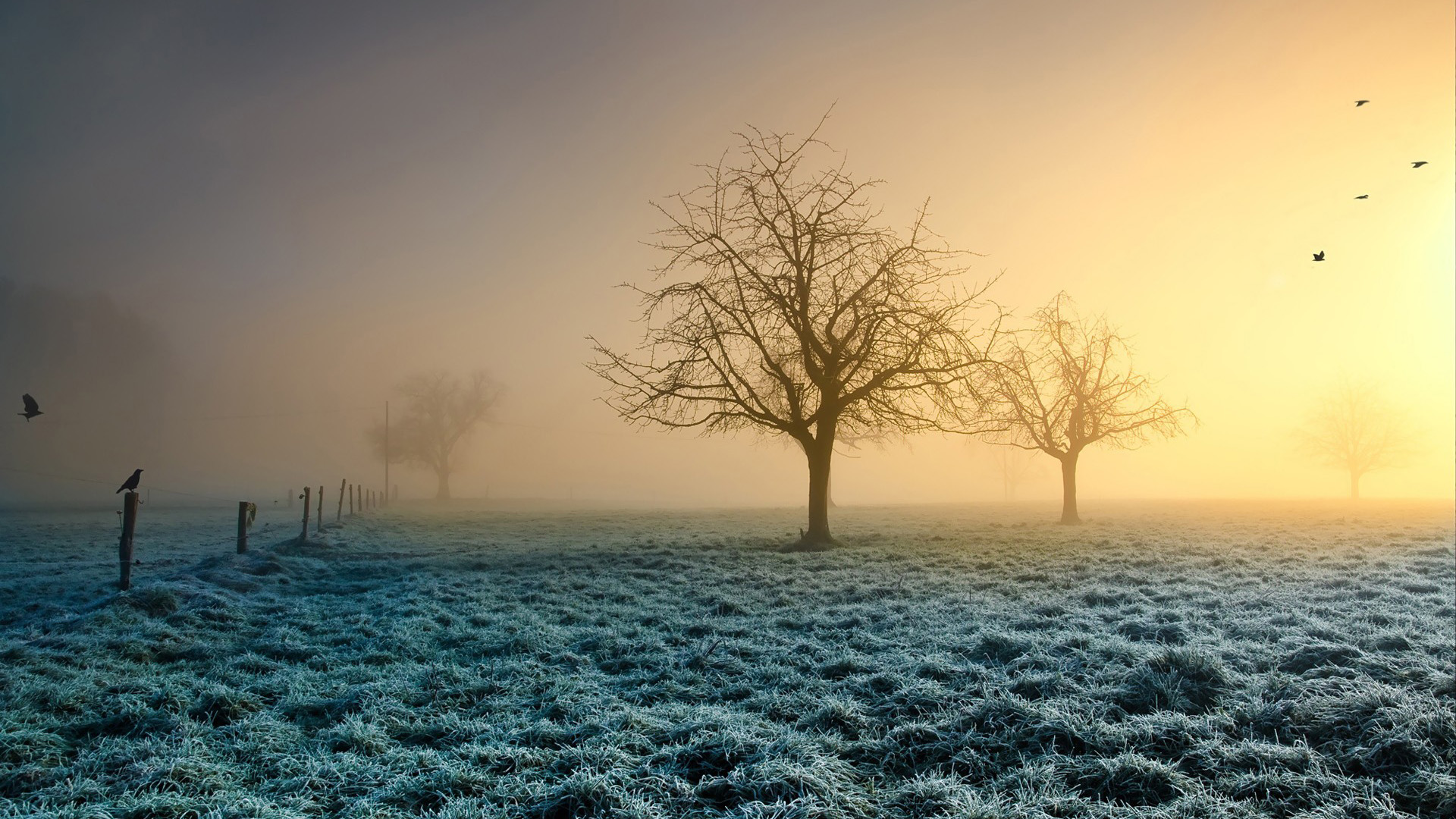 冬天森林树木雪地风景免费电脑壁纸下载