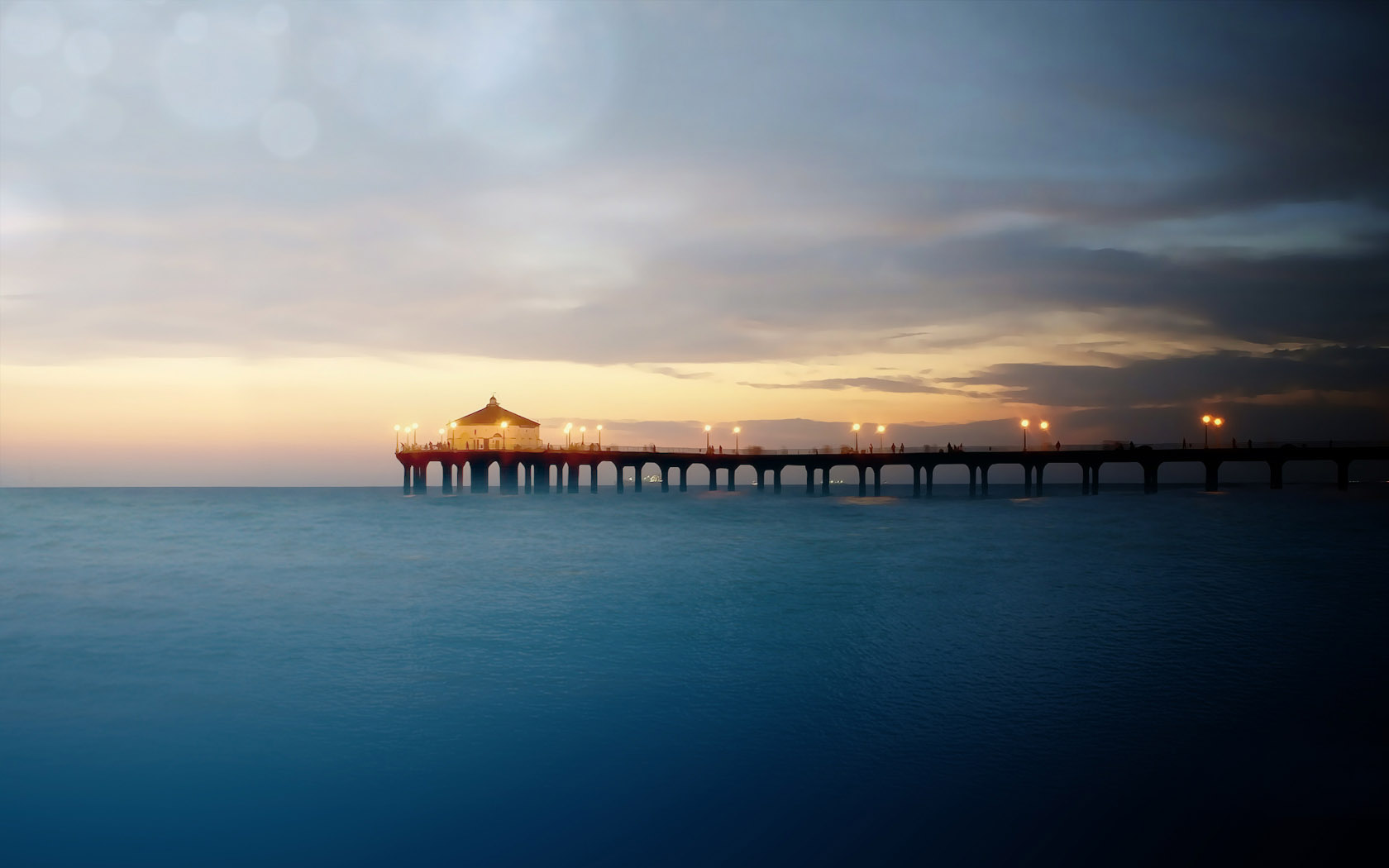 天空星星光芒下的海与潮汐船风景壁纸免费电脑下载