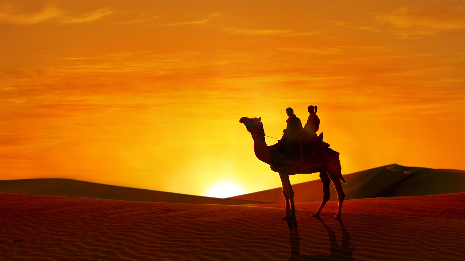 沙漠日落唯美风景壁纸,人与太阳的绝美画面免费电脑壁纸下载