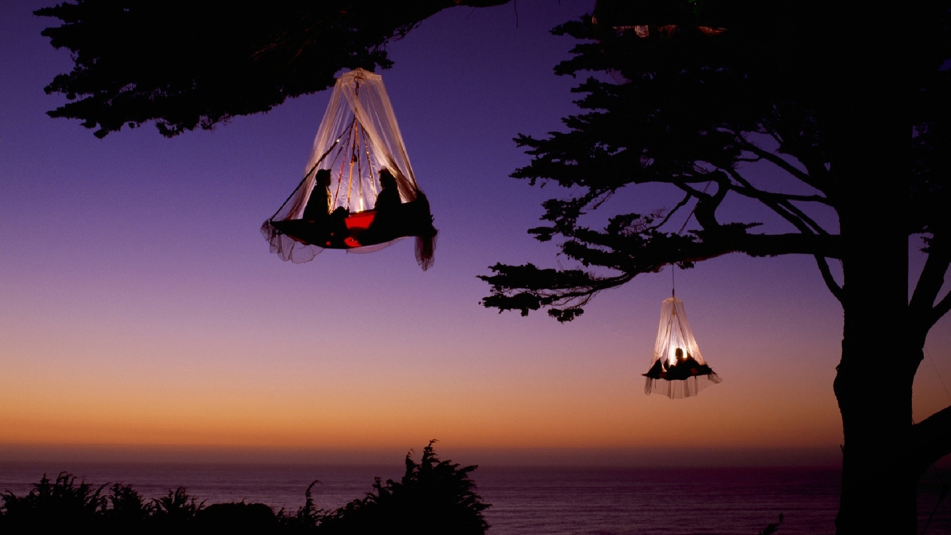 海洋夜晚树木天空云风景桌面壁纸免费下载