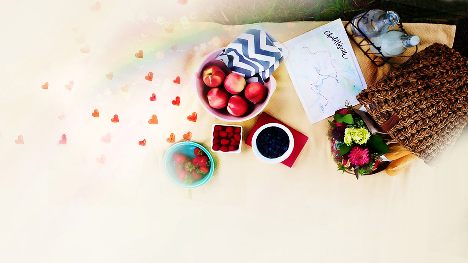 夏天自然小清新风景壁纸免费下载 含花卉蝴蝶山树湖水蓝天白云